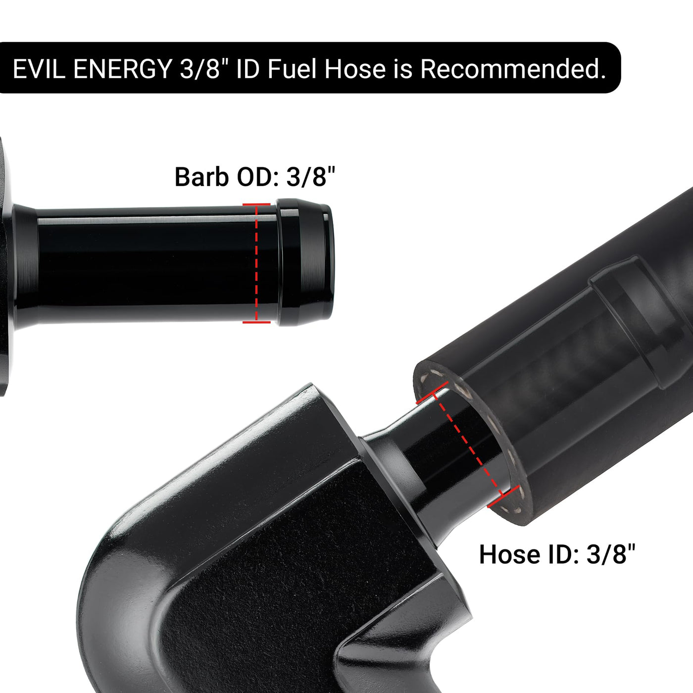 EVIL ENERGY is our brand, we 're a direct and professional manufacturer, one of greatest manufacturer and exporter in tuning parts include intake system, exhaust system, fuel system, cooling system, interior and exterior parts. The 10an to 3/8 inch barb is used for pipe link, widely used in fuel system. The barb fitting is made of aluminum alloy 6061-T6 with a black anodized finish. Note: When installing fittings, it is recommended to use clamps to ensure sealing.