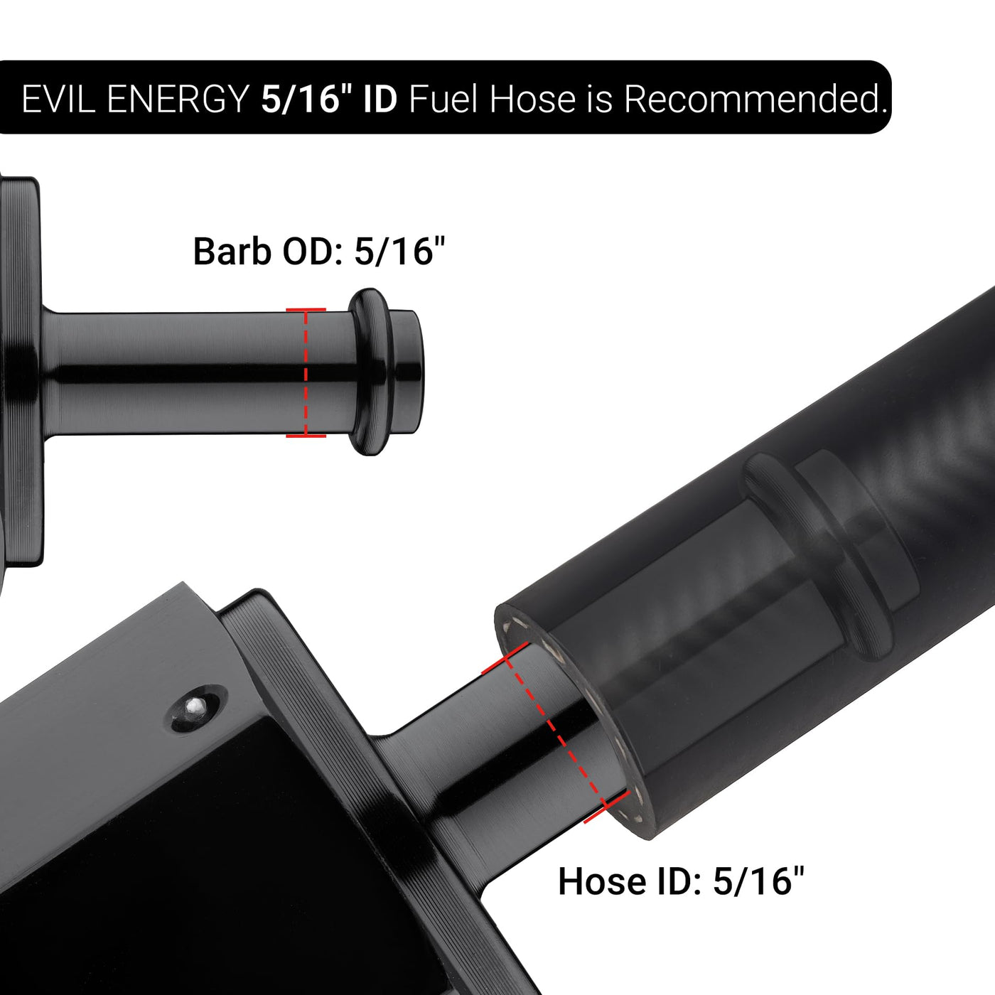 EVIL ENERGY is our brand, we're a direct and professional manufacturer, one of greatest manufacturer and exporter in tuning parts include intake system, exhaust system, fuel system, cooling system, interior and exterior parts. The 10an to 5/16 inch barb is used for pipe link, widely used in fuel system. The barb fitting is made of aluminum alloy 6061-T6 with a black anodized finish. Note: When installing fittings, it is recommended to use clamps to ensure sealing.