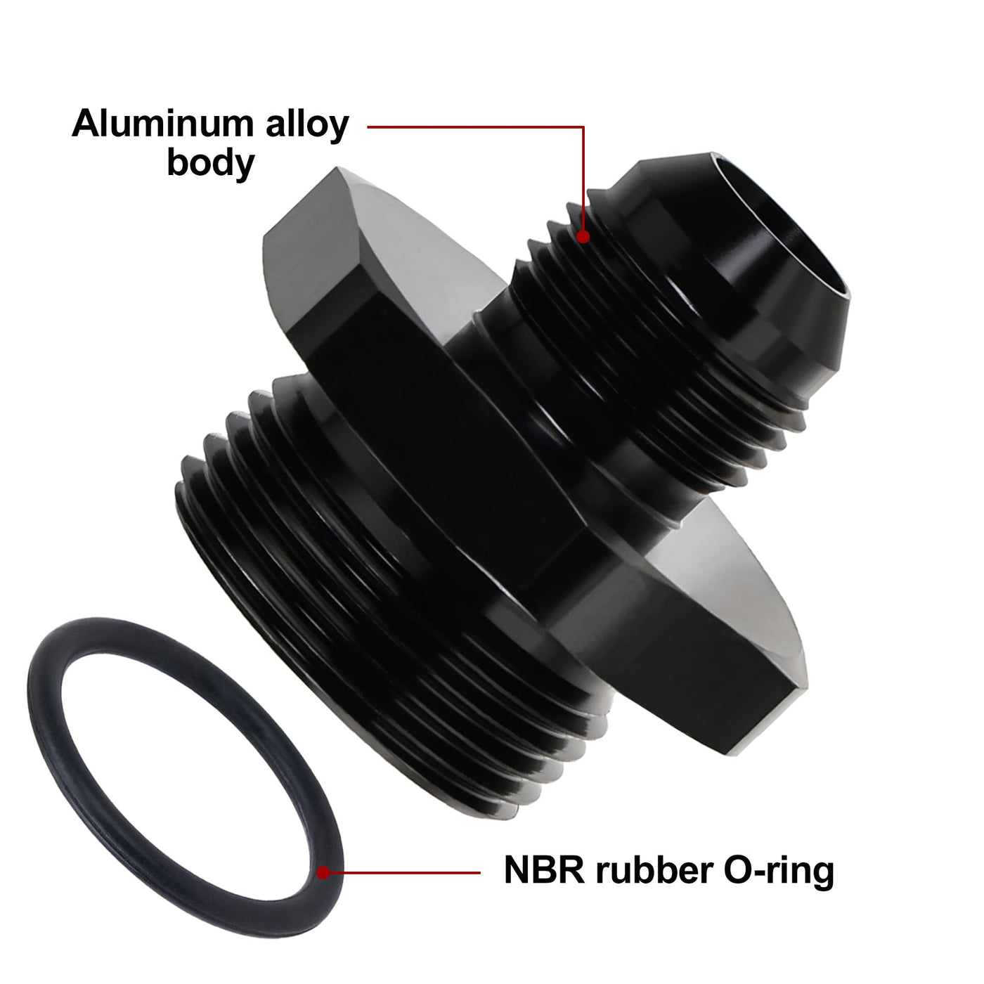Q: What materials are used in the construction of this adapter fitting?A: This adapter fitting is made from high-quality aluminum alloy 6061-T6, paired with a durable NBR rubber O-ring, providing excellent strength and resistance to wear.