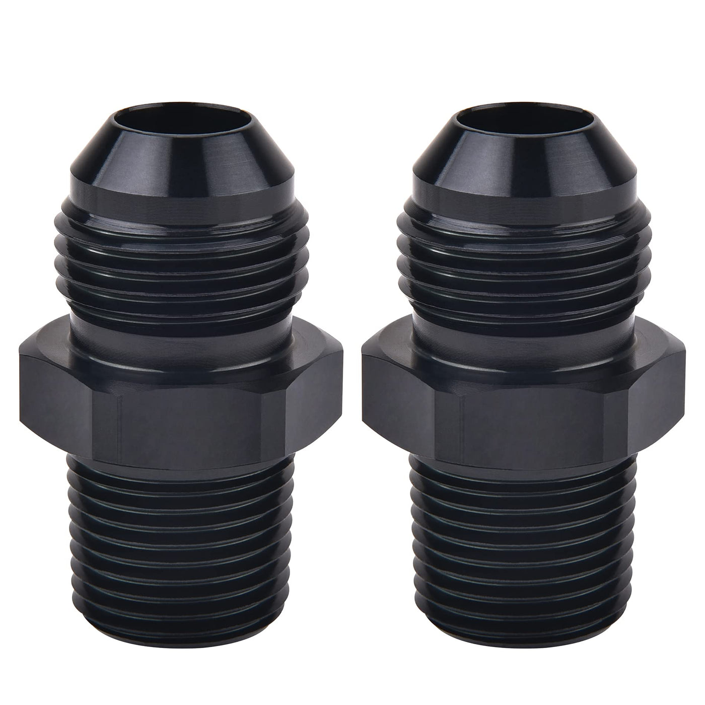 Evil Energy 10An Male Flare To 1/2'' Npt Pipe Fitting Adapter Aluminum Straight Black 2Pcs