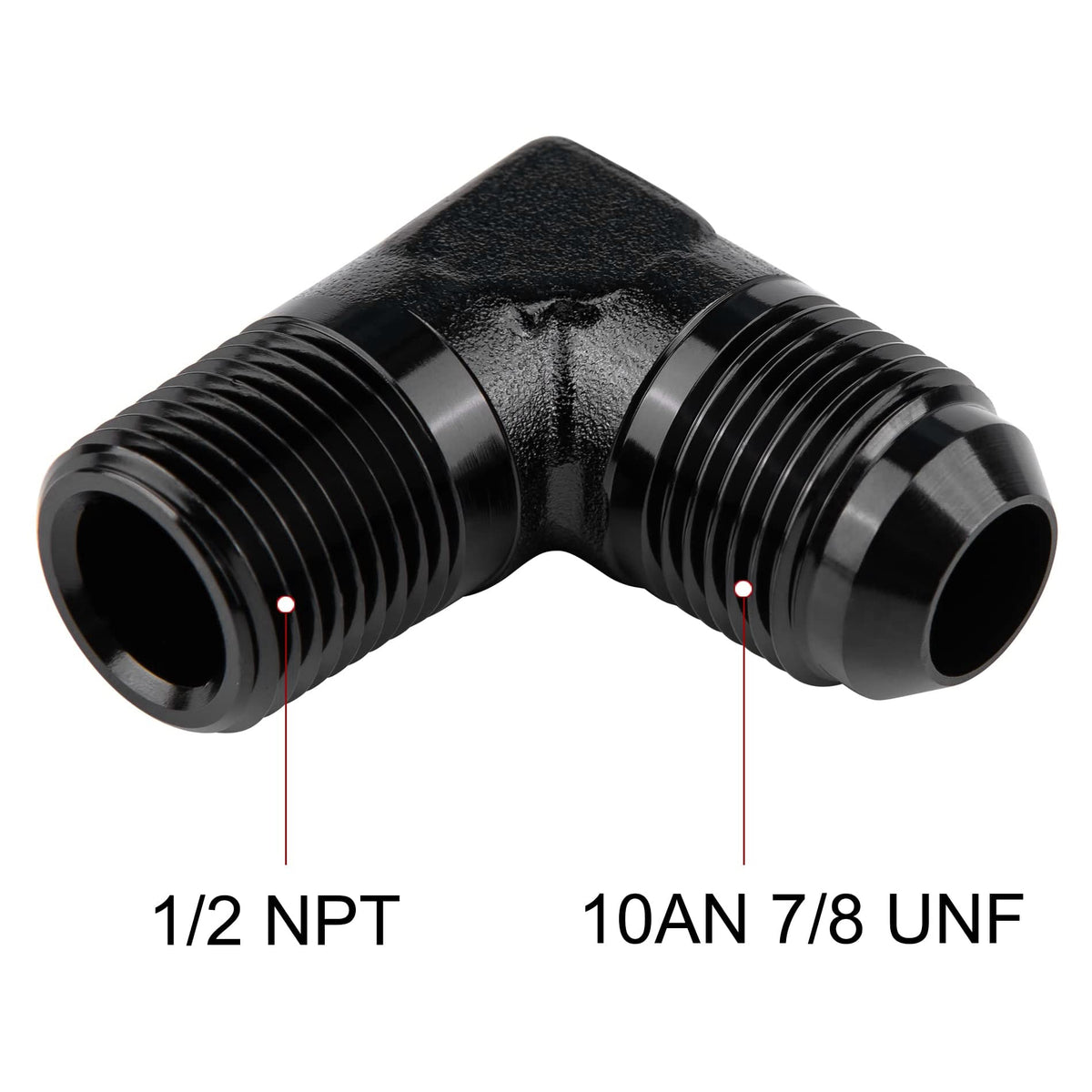 EVIL ENERGY is our brand, we're a direct and professional manufacturer, one of greatest manufacturer and exporter in tuning parts include intake system, exhaust system, fuel system, cooling system, interior and exterior parts. 1/2 inch NPT to 10an 90 degree elbow fitting is sealed by a 37 degree angle on the AN end and a 60 degree tapered thread on the NPT threaded end, ensuring a tight seal and easy handling. Notice: Strongly recommended to apply sealant or Teflon tape to NPT threads before assembly for better sealing effect.