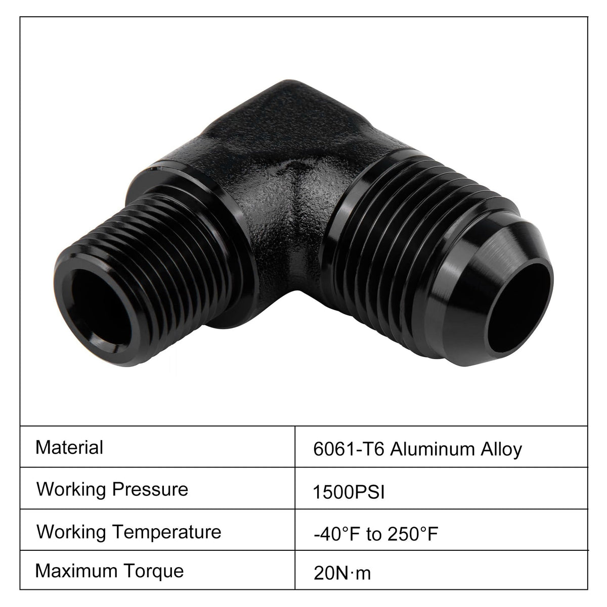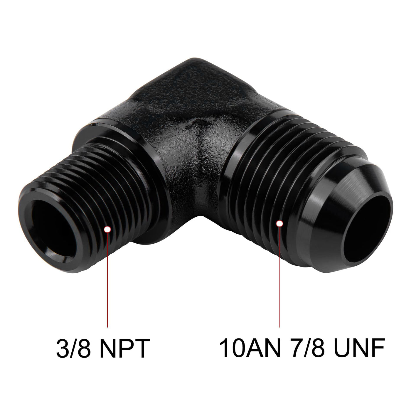EVIL ENERGY is our brand, we're a direct and professional manufacturer, one of greatest manufacturer and exporter in tuning parts include intake system, exhaust system, fuel system, cooling system, interior and exterior parts. 3/8 inch NPT to 10an 90 degree elbow fitting is sealed by a 37 degree angle on the AN end and a 60 degree tapered thread on the NPT threaded end, ensuring a tight seal and easy handling. Notice: Strongly recommended to apply sealant or Teflon tape to NPT threads before assembly for better sealing effect.