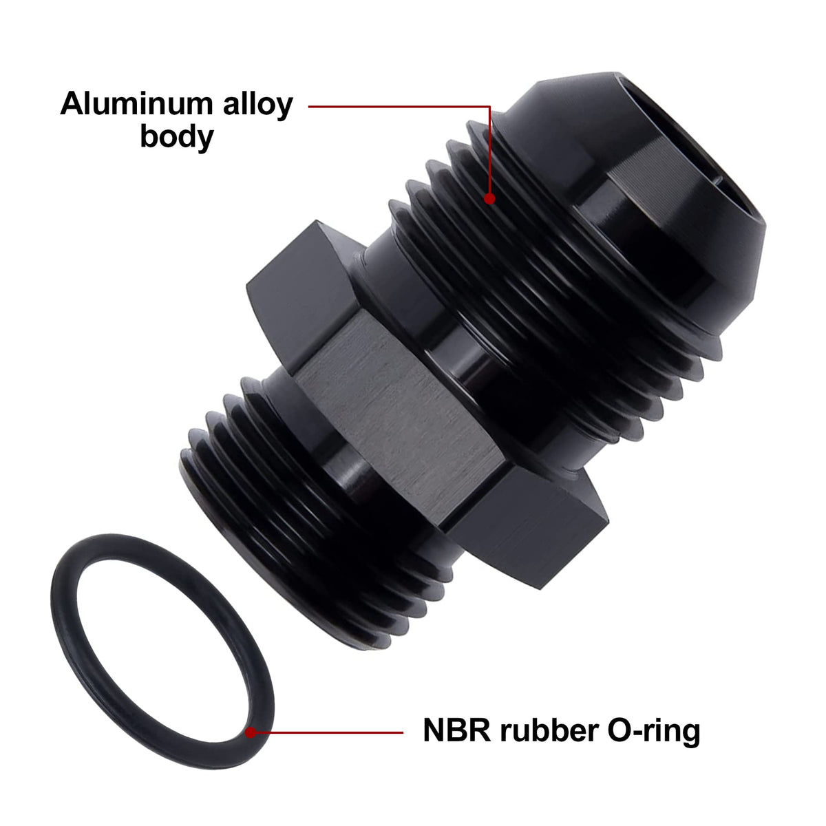 Q: What materials are used in this adapter?A: This adapter is made from high-quality aluminum alloy and features NBR rubber for the O-ring, ensuring durability and effective sealing under pressure.