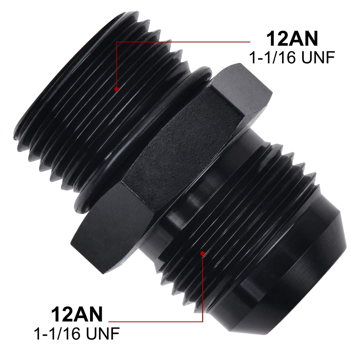 Q: What is the size and thread specification of the EVIL ENERGY AN fitting adapter?A: The EVIL ENERGY AN fitting adapter features a thread size of 12AN and AN12 ORB, with a specification of 1 1/16-12 UNF.