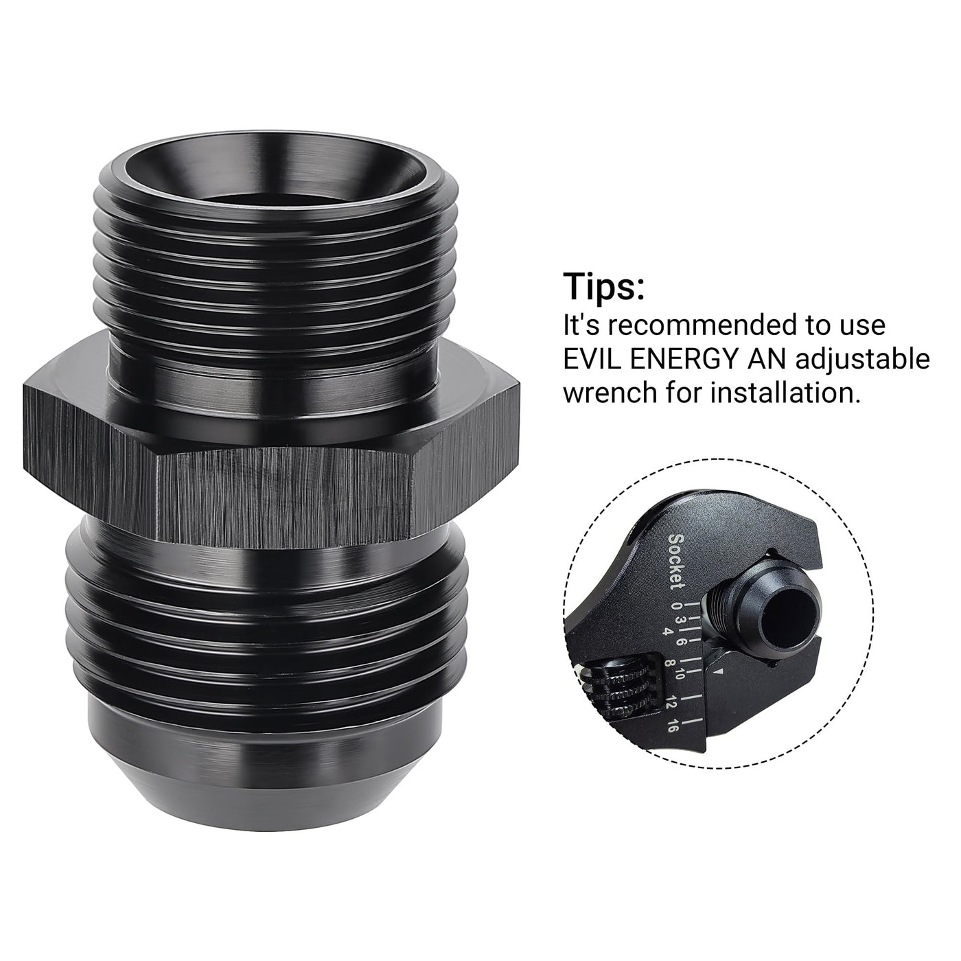 EVIL ENERGY is our brand, we're a direct and professional manufacturer, one of greatest manufacturer and exporter in tuning parts include intake system, exhaust system, fuel system, cooling system, interior and exterior parts. Metric thread fitting is made of aluminum and NBR rubber. Seal is ensured by 37 degree Angle and O-ring. It is recommended to use aluminum adjustment wrench when installing, which can make the installation simpler.
