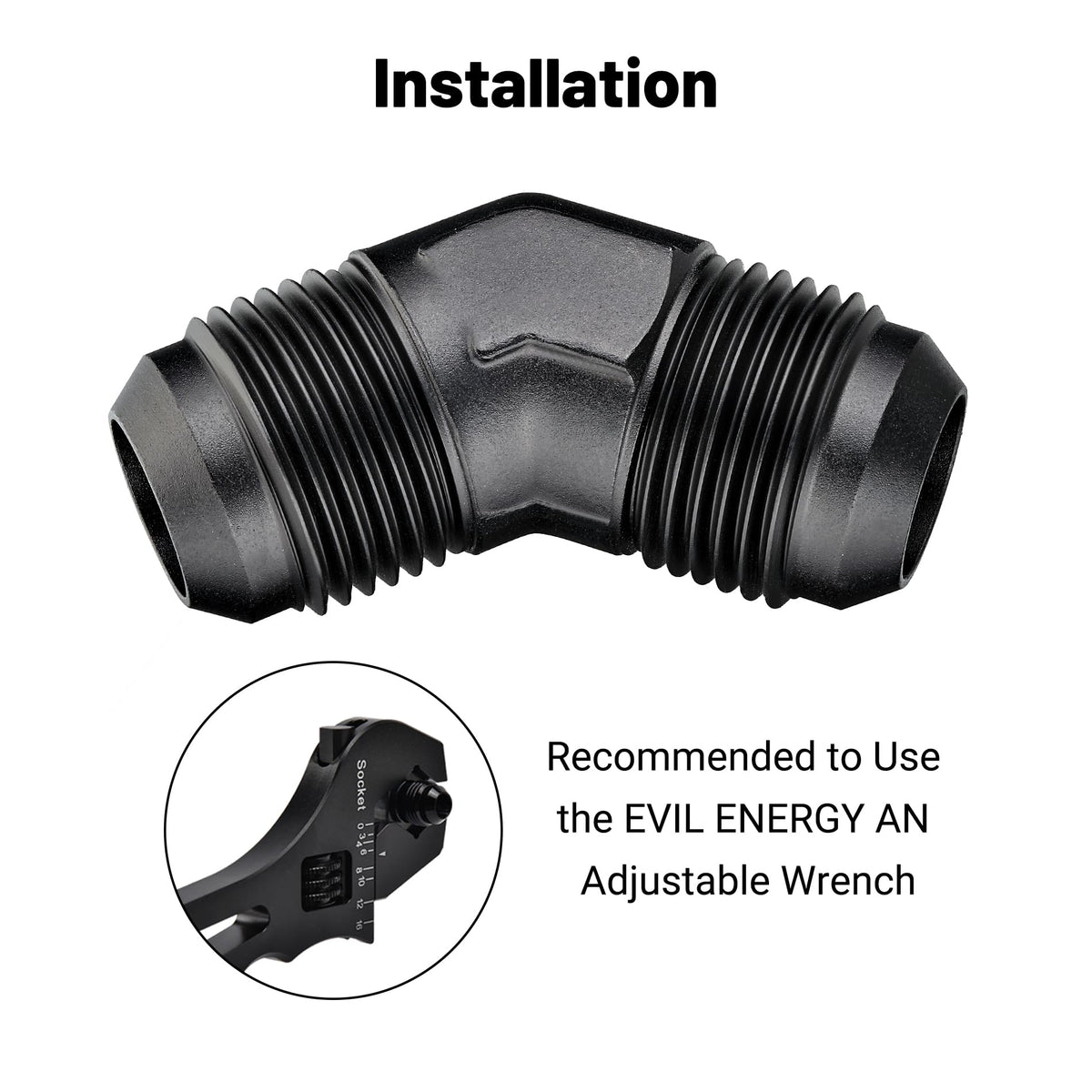 EVIL ENERGY 12AN Male to Male Flare 45 Degree Union Coupler Fitting Coupling Aluminum Black
