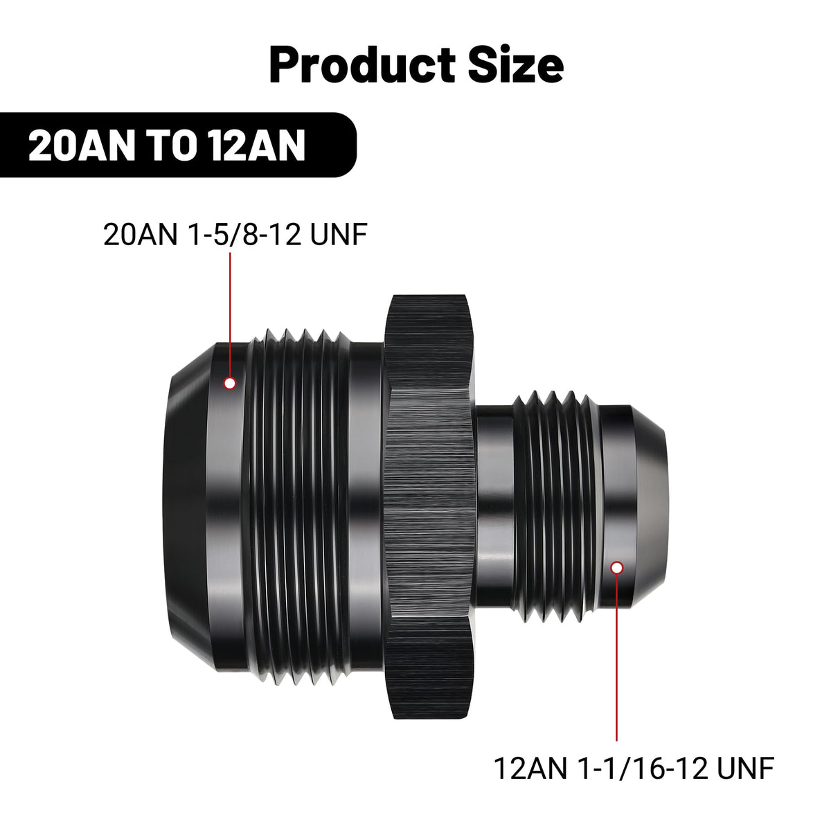 EVIL ENERGY 20AN Male to AN12 Male Flare Reducer Coupler Union Straight Adapter Fitting Black