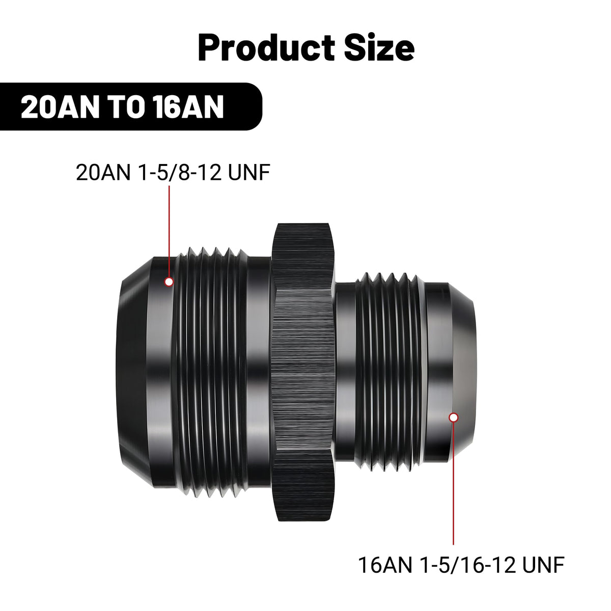 EVIL ENERGY 20AN Male to AN16 Male Flare Reducer Coupler Union Straight Adapter Fitting Black