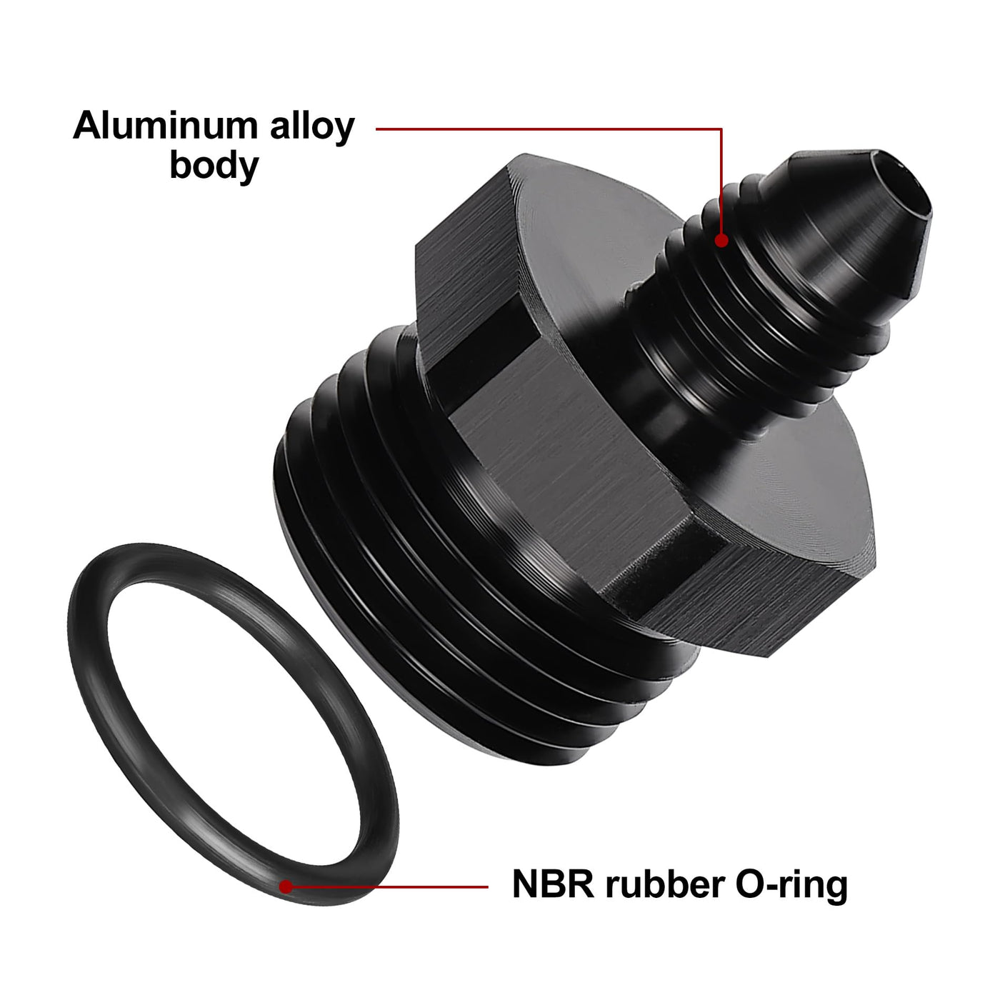 Q: What materials are used in the construction of this fitting adapter?A: This fitting adapter is made of aluminum alloy 6061-T6 for durability, and it features an NBR rubber O-ring for effective sealing.