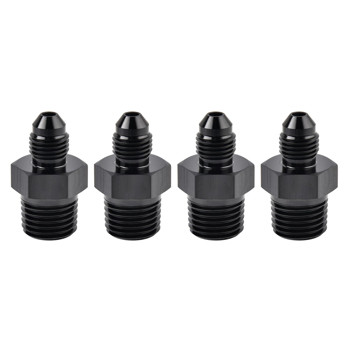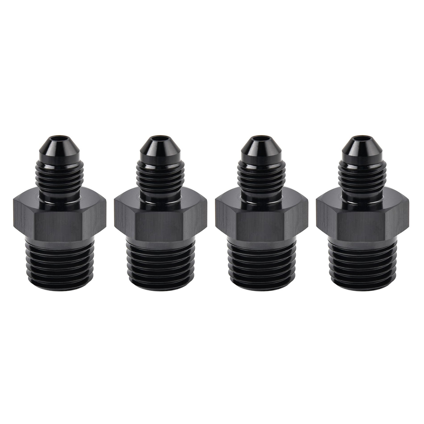 EVIL ENERGY 3AN Male Flare to 1/4'' NPT Pipe Fitting Adapter Aluminum Straight Black 4PCS