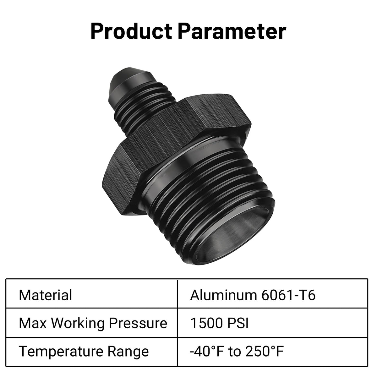 Size: 3/8'' NPT to AN3, the thread size of 3AN is 3/8-24 UNF | Material: Made of aluminum alloy 6061-T6, anodized black surface | Sealing: The AN side of the flare is sealed by a 37 degree angle and the NPT thread side is sealed by a 60 degree tapered thread | Application: Widely used in fuel system, cooling system, power steering system, etc | Notice: To ensure no leakage at the NPT end, sealant or PTFE tape is strongly recommended. Recommended to use a wrench for installation and removal, 5-10 seconds to complete installation