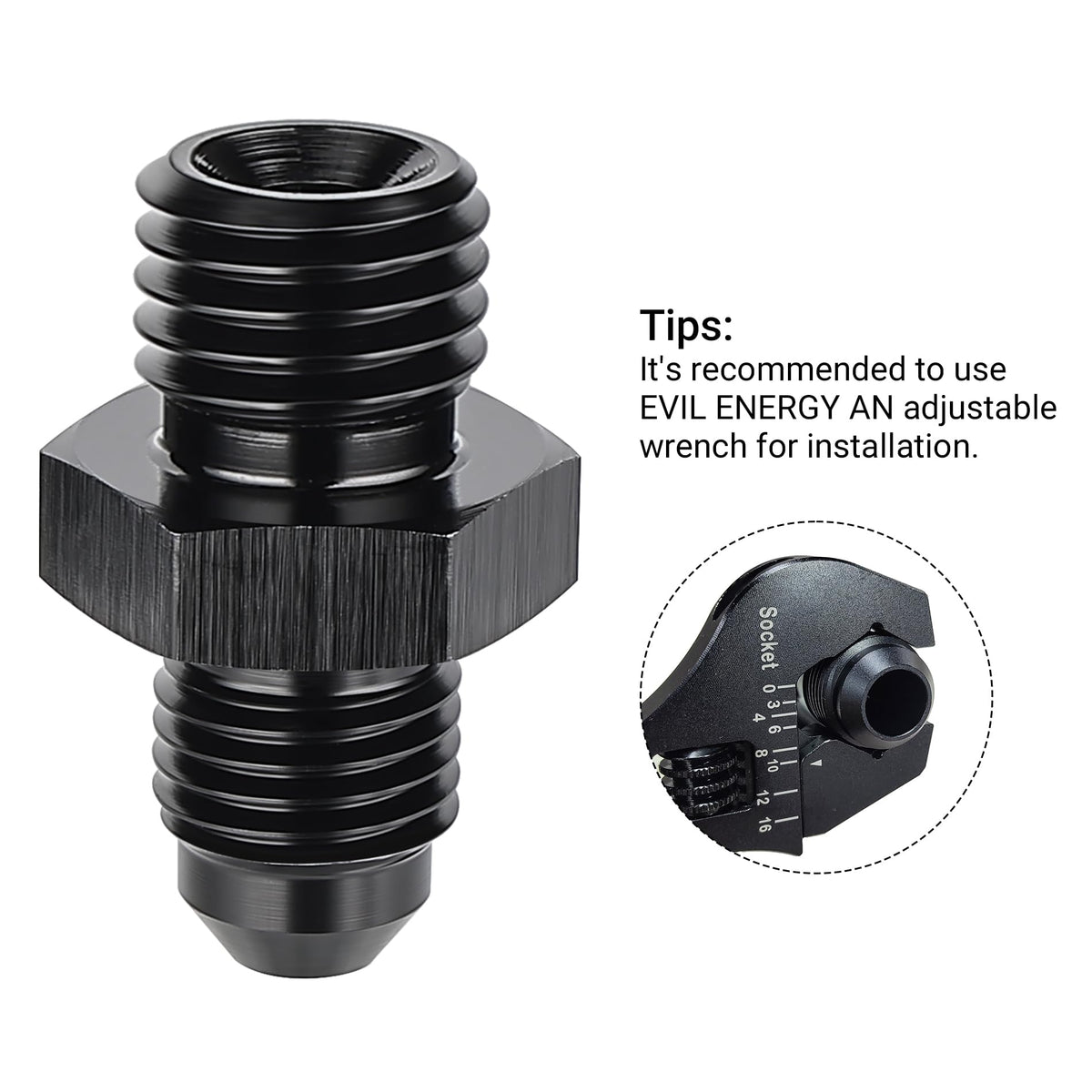 EVIL ENERGY is our brand, we're a direct and professional manufacturer, one of greatest manufacturer and exporter in tuning parts include intake system, exhaust system, fuel system, cooling system, interior and exterior parts. Metric thread fitting is made of aluminum and NBR rubber. Seal is ensured by 37 degree Angle and O-ring. It is recommended to use aluminum adjustment wrench when installing, which can make the installation simpler.