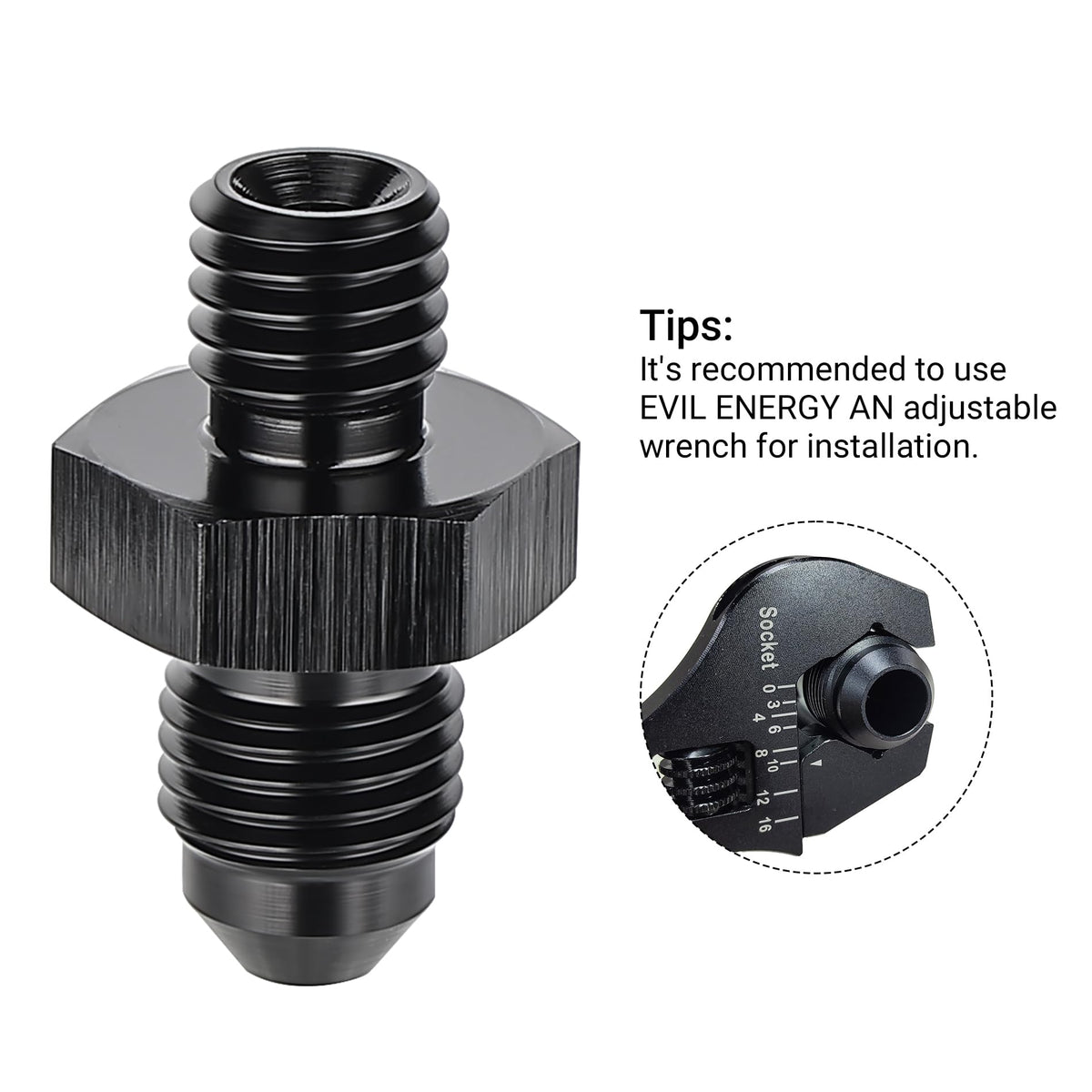 Evil Energy 3An Male Flare To M8 X 1.25Mm Male Metric Fitting Adapter Aluminium Alloy 2Pcs