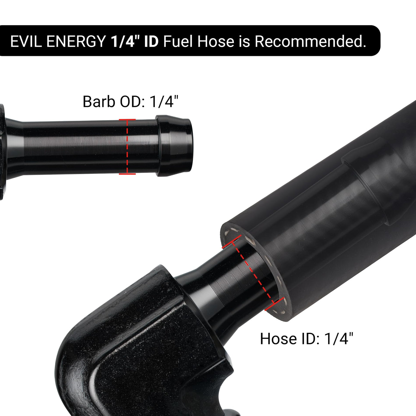 EVIL ENERGY is our brand, we're a direct and professional manufacturer, one of greatest manufacturer and exporter in tuning parts include intake system, exhaust system, fuel system, cooling system, interior and exterior parts. The 4an to 1/4 inch barb is used for pipe link, widely used in fuel system. The barb fitting is made of aluminum alloy 6061-T6 with a black anodized finish. Note: When installing fittings, it is recommended to use clamps to ensure sealing.