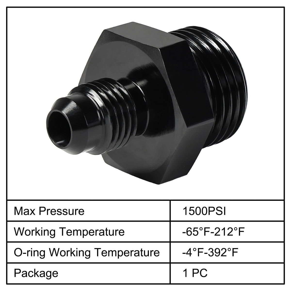 Q: What is the temperature range for the O-ring used in this adapter?A: The O-ring temperature range for this adapter is from -4°F to 392°F, making it versatile for different operating conditions.