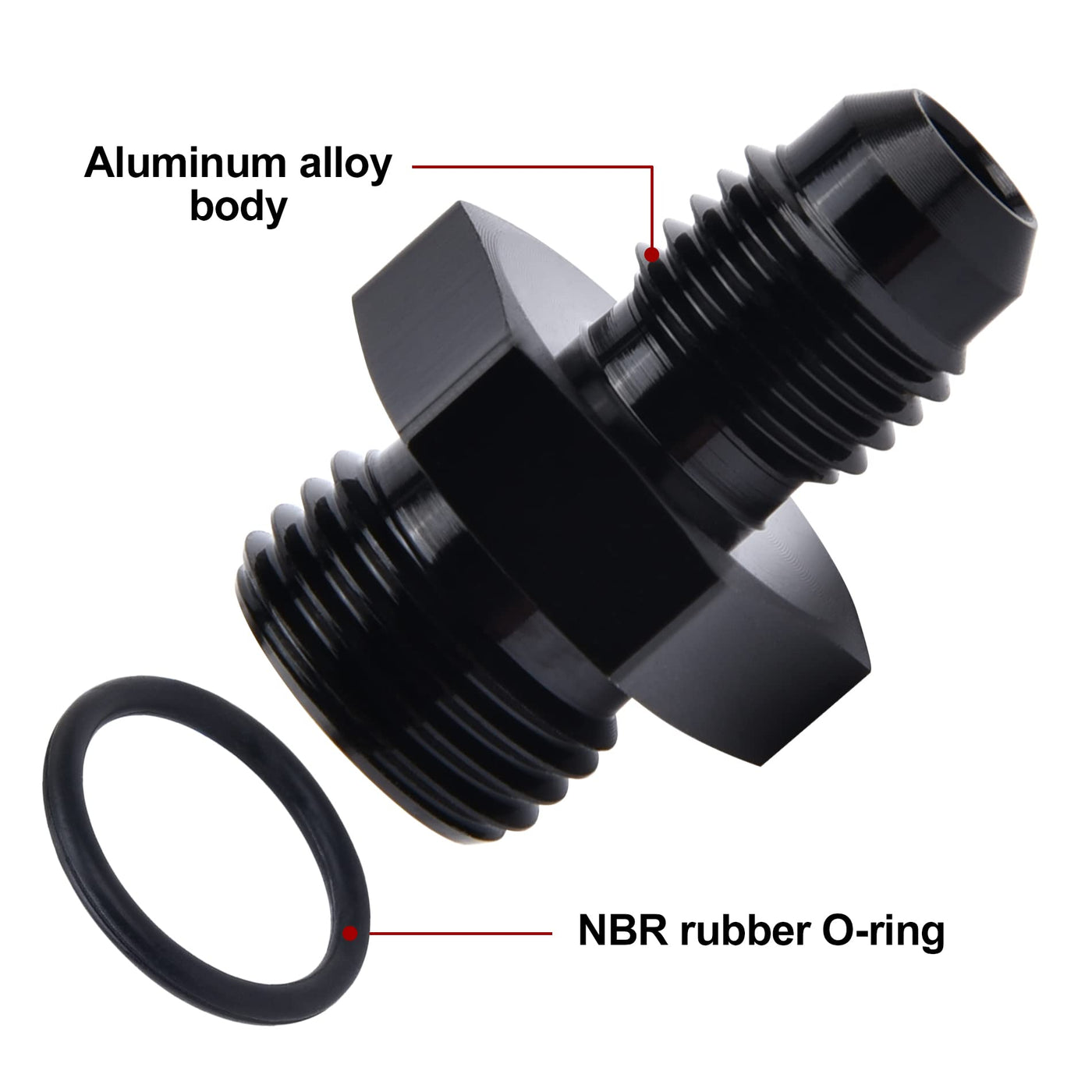 Q: What materials are used in the construction of this fitting adapter?A: This fitting adapter is made from high-quality aluminum alloy 6061-T6 and features an NBR rubber O-ring for effective sealing.