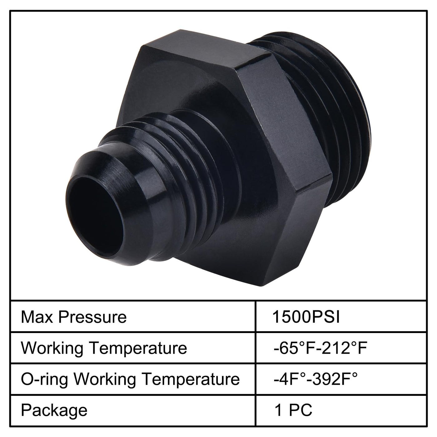 Q: How does the sealing mechanism work for this fitting adapter?A: The AN side of the flare is sealed using a 37-degree angle, while the ORB side is sealed with an O-ring, ensuring a positive and secure seal to prevent leaks.