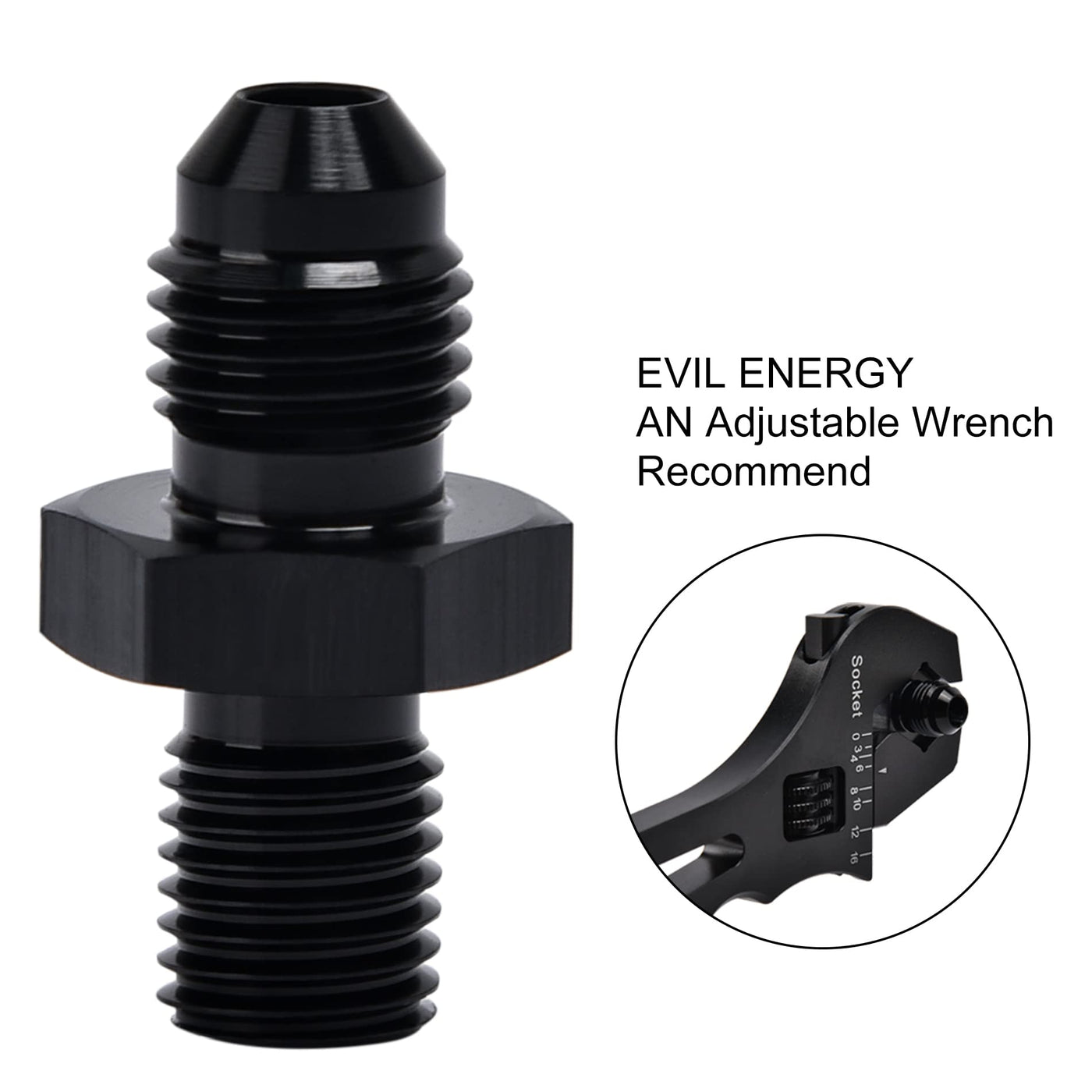 EVIL ENERGY is our brand, we're a direct and professional manufacturer, one of greatest manufacturer and exporter in tuning parts include intake system, exhaust system, fuel system, cooling system, interior and exterior parts. Metric thread fitting is made of aluminum and NBR rubber. Seal is ensured by 37 degree Angle and O-ring. It is recommended to use aluminum adjustment wrench when installing, which can make the installation simpler.
