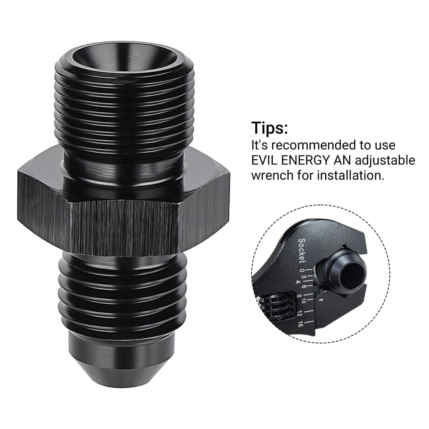 EVIL ENERGY is our brand, we're a direct and professional manufacturer, one of greatest manufacturer and exporter in tuning parts include intake system, exhaust system, fuel system, cooling system, interior and exterior parts. Metric thread fitting is made of aluminum and NBR rubber. Seal is ensured by 37 degree Angle and O-ring. It is recommended to use aluminum adjustment wrench when installing, which can make the installation simpler.