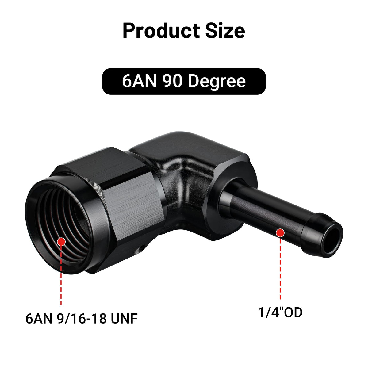 EVIL ENERGY 6AN Female to 1/4'' Barb Hose Fitting 90 Degree Swivel 2PCS