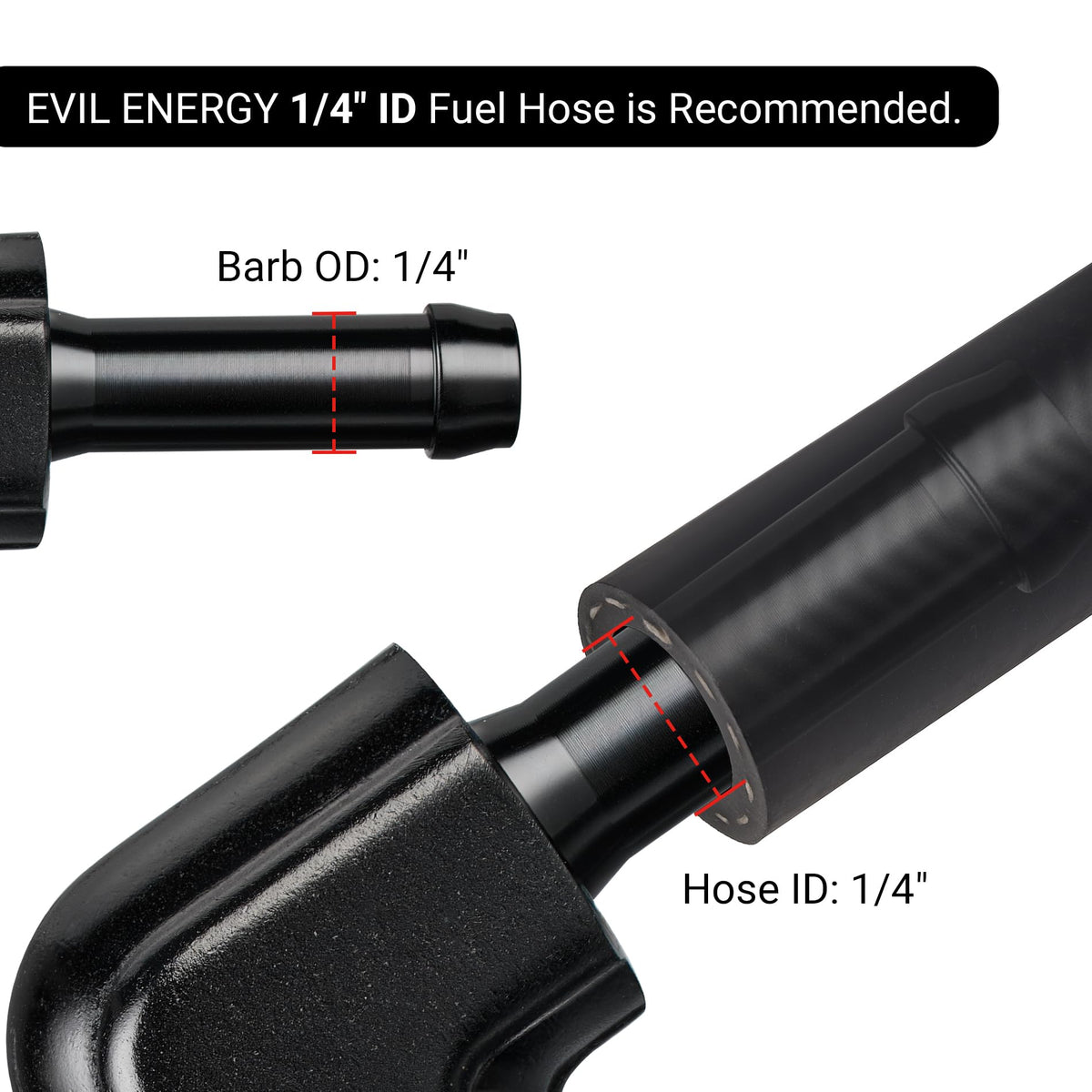 EVIL ENERGY is our brand, we're a direct and professional manufacturer, one of greatest manufacturer and exporter in tuning parts include intake system, exhaust system, fuel system, cooling system, interior and exterior parts. The 6an to 1/4 inch barb is used for pipe link, widely used in fuel system. The barb fitting is made of aluminum alloy 6061-T6 with a black anodized finish. Note: When installing fittings, it is recommended to use clamps to ensure sealing.