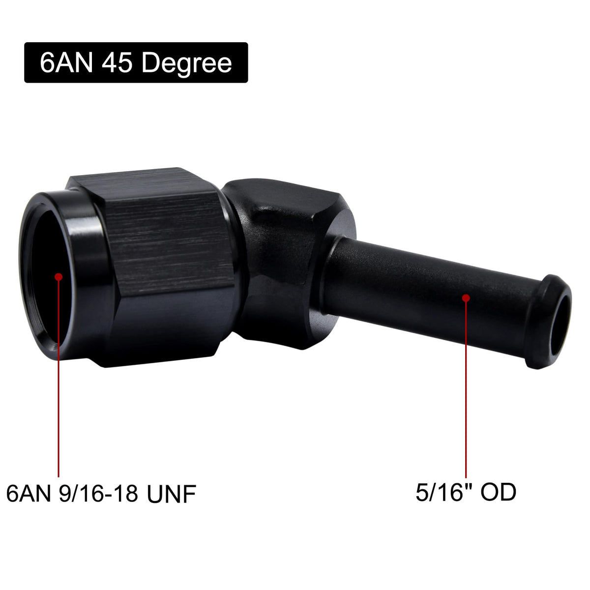 Q: Is this fitting compatible with other types of hoses?A: This 6AN to 5/16" barb fitting is specifically designed for use with hoses that fit those dimensions, ensuring a snug and leak-free connection.