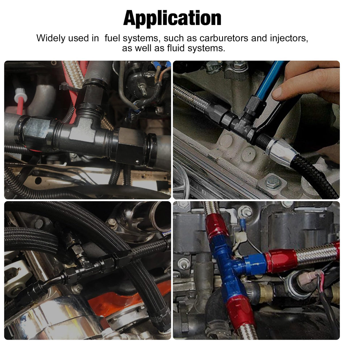 Q: What fluids can the AN6 tee fitting be used with?A: The AN6 tee fitting is designed to work with a variety of fluids including oil, fuel, E85, water, coolant, and air.