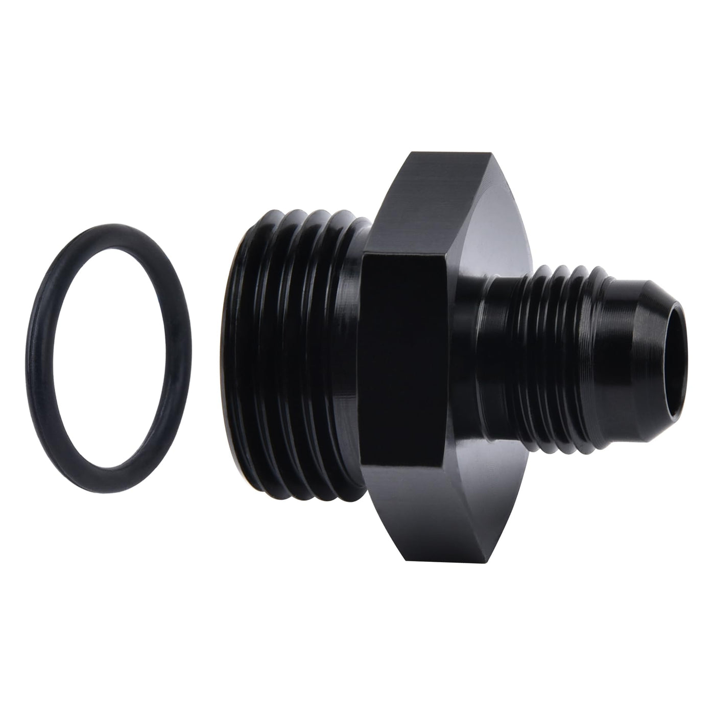 Q: How does the sealing mechanism work for this fitting?A: The AN side of the fitting is sealed by a 37-degree angle, while the ORB side is sealed using an O-ring, ensuring a tight and secure connection.