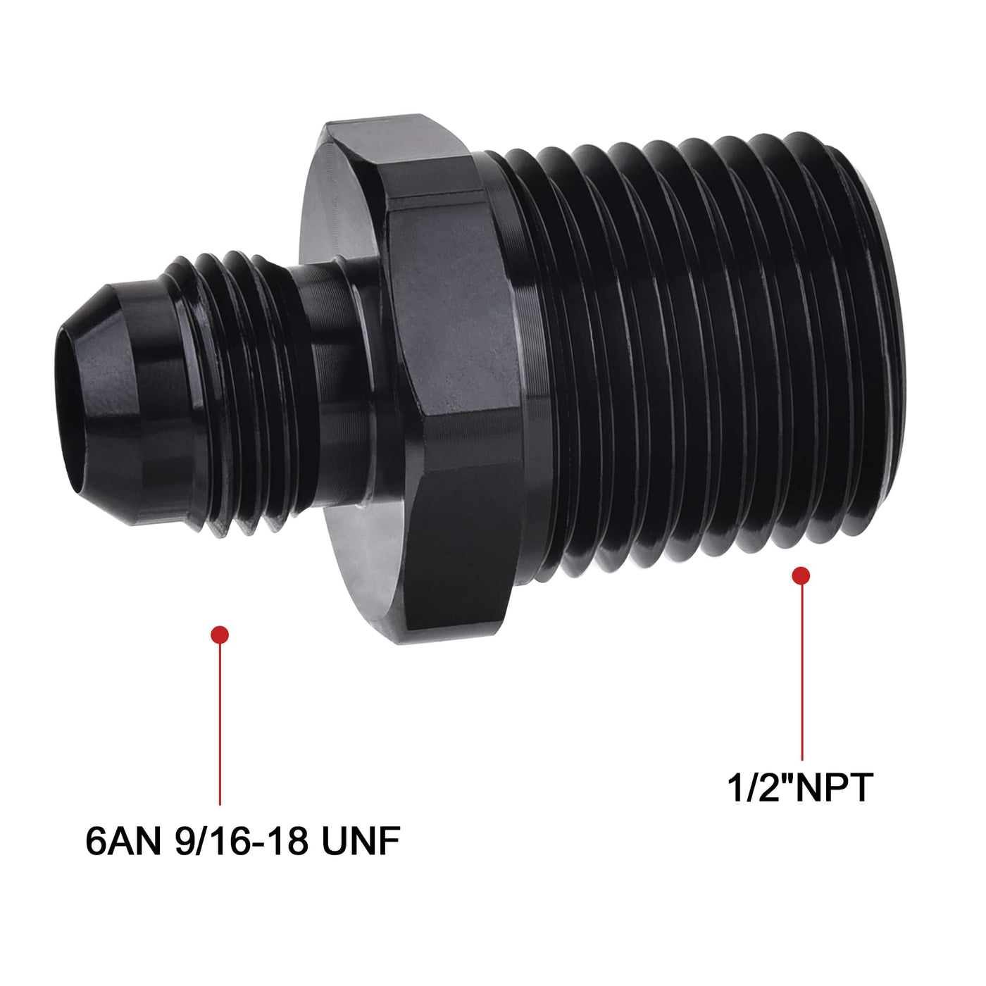 Evil Energy 6An Male Flare To 1/2'' Npt Pipe Fitting Adapter Aluminum Straight Black