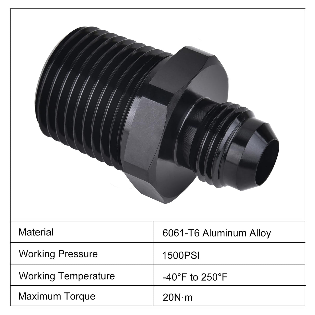 EVIL ENERGY 6AN Male Flare to 1/2'' NPT Pipe Fitting Adapter Aluminum Straight Black 4PCS