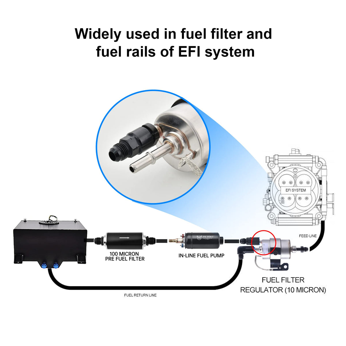 Evil energy is our brand, we're a direct and professional manufaturer in China, one of greatest manufacturer and exporter in Tuning parts include intake system, exhaust system, engine system, cooling system, interior & exterior parts. 6AN Male To 3/8' Quick-Disconnect Female EFI Fitting Accept customized order with minimum quantity. These fuel fittings are precisely manufactured for a quick and easy installation. 6AN Male to 3/8'factory fuel line The fitting made of T6061 Aluminum, high strength and good durability.