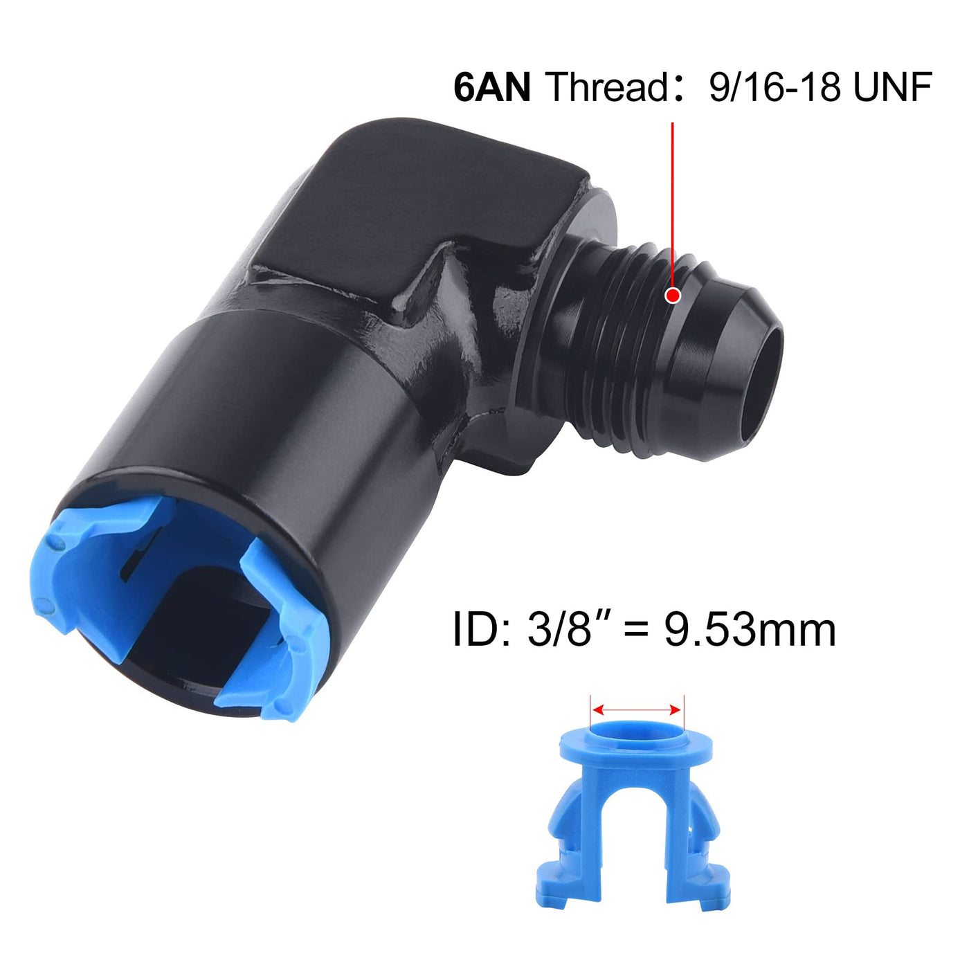 [Size] The Thread Size Of 6An Is 9/16-18Unf. The Id Of Spring Lock Is 3/8 Inch. | [Seal] The 6An Flare Efi Fitting Is Sealed At 37 Degree Angle To Avoid Leakage. | [Parameter] Working Pressure: 1500Psi; Temperature Range: -40°F To 176°F. | [Material] Made Of Aluminum Alloy 6061-T6. Spring Lock Is Made Of Plastic. | [Application] Widely Used In Engine Fuel Rail, Ls Swap, Transmission Cooler, Return Line, Fuel Sensor, Etc.
