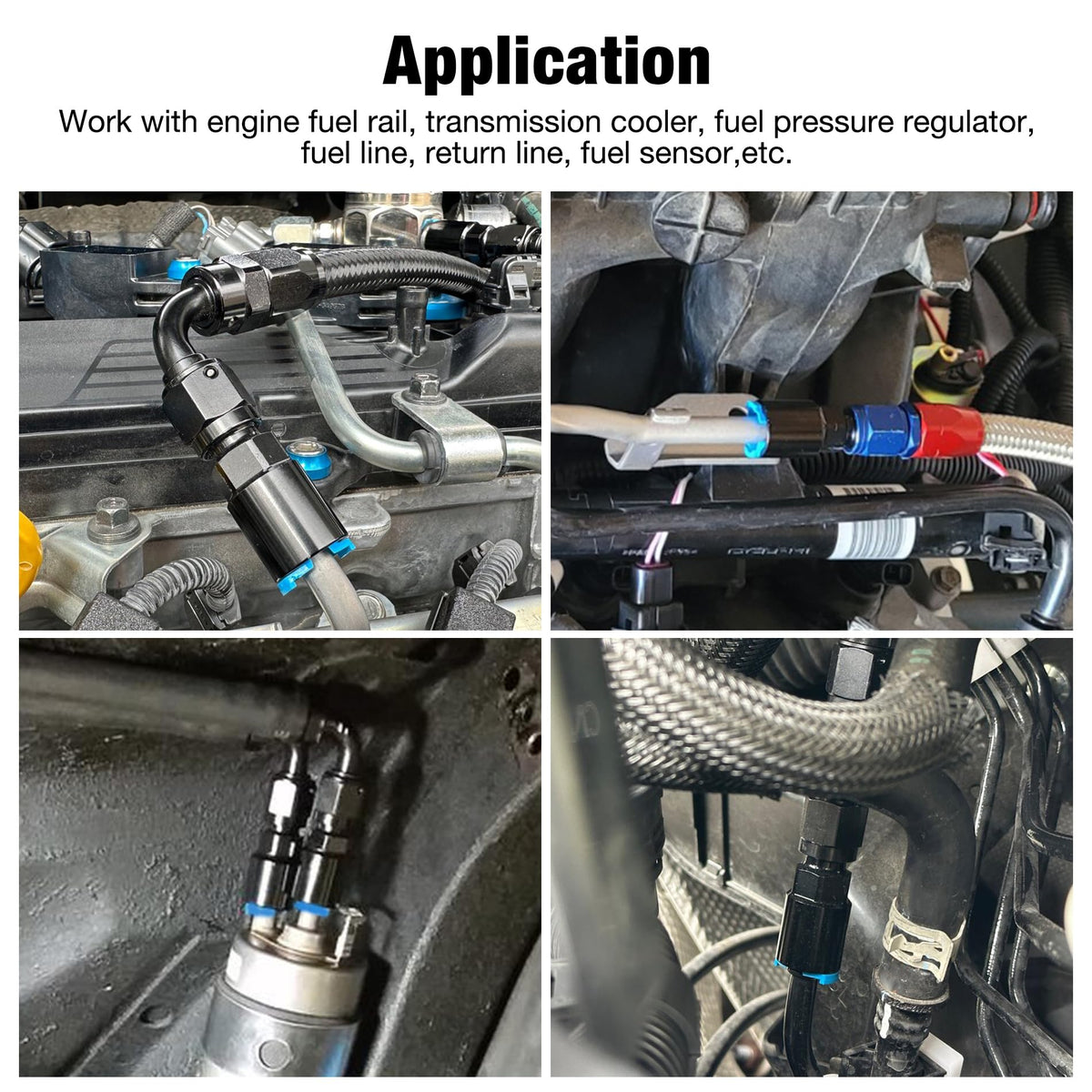 [Size] The thread size of 6an is 9/16-18UNF. The ID of spring lock is 5/16 inch. | [Seal] The 6an flare efi fitting is sealed at 37 degree angle to avoid leakage. | [Parameter] Working pressure: 1500psi; Temperature range: -40