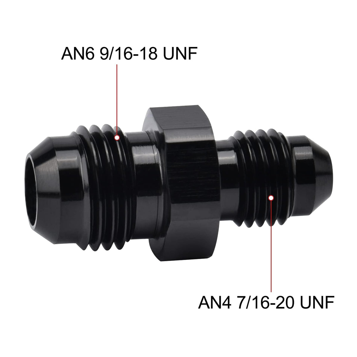 EVIL ENERGY 6AN Male to AN4 Male Flare Reducer Coupler Union Straight Adapter Fitting Black