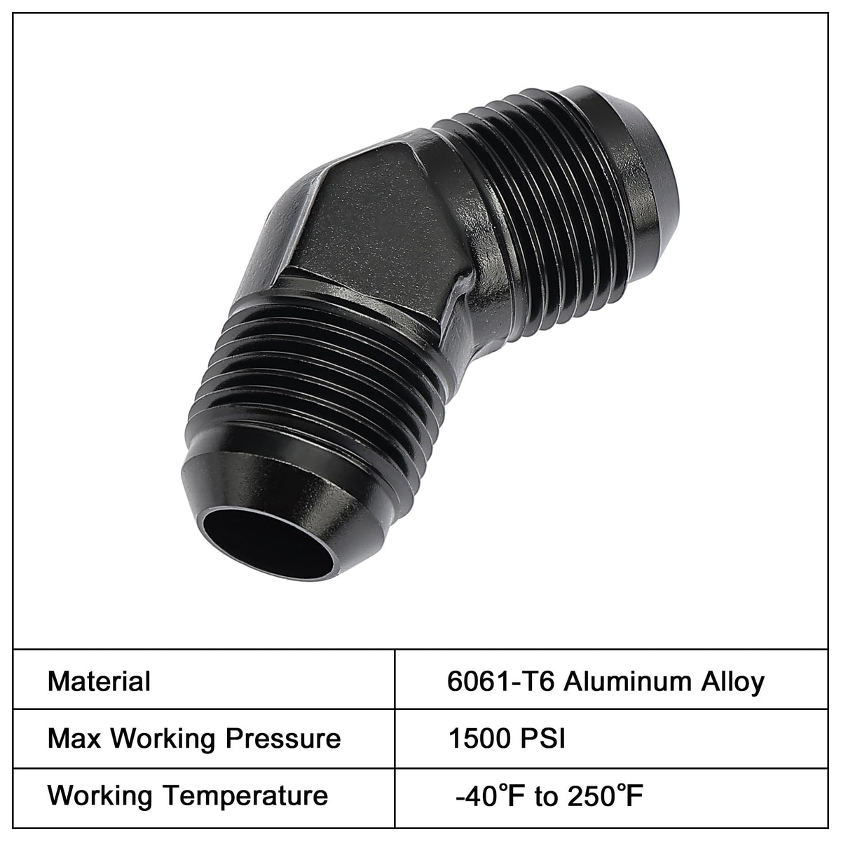 EVIL ENERGY 6AN Male to Male Flare 45 Degree Union Coupler Fitting Coupling Aluminum Straight Black