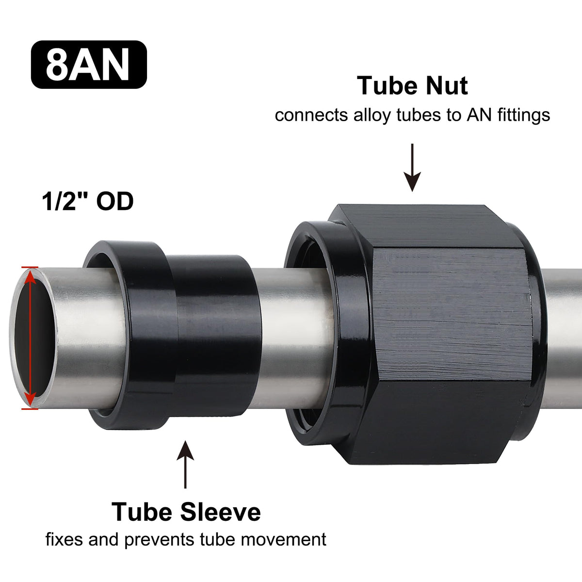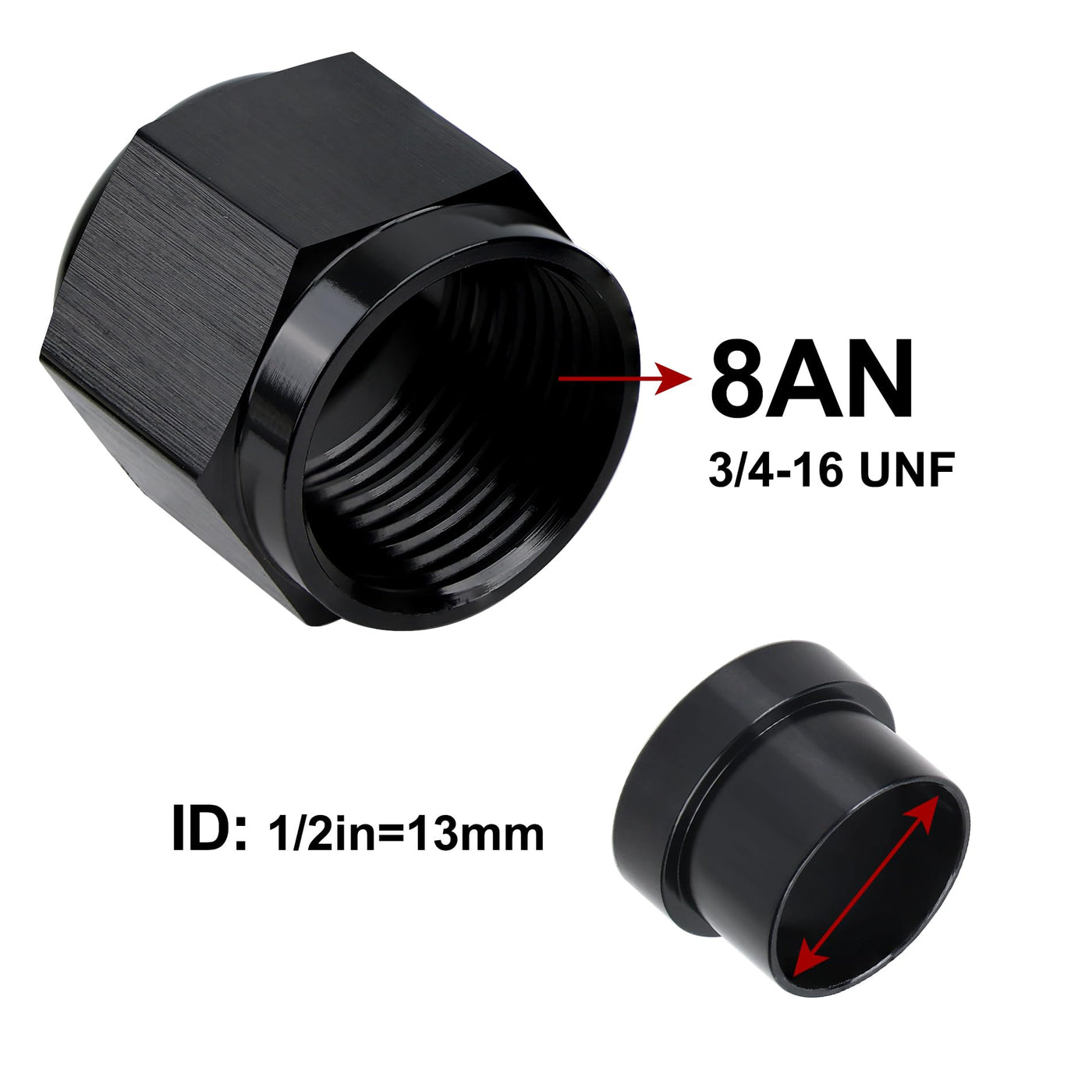 Evil Energy 8An Female Hardline Tube Nut & Sleeve Aluminum Fitting For 1/2'' Od Alloy Tubing 2Pcs