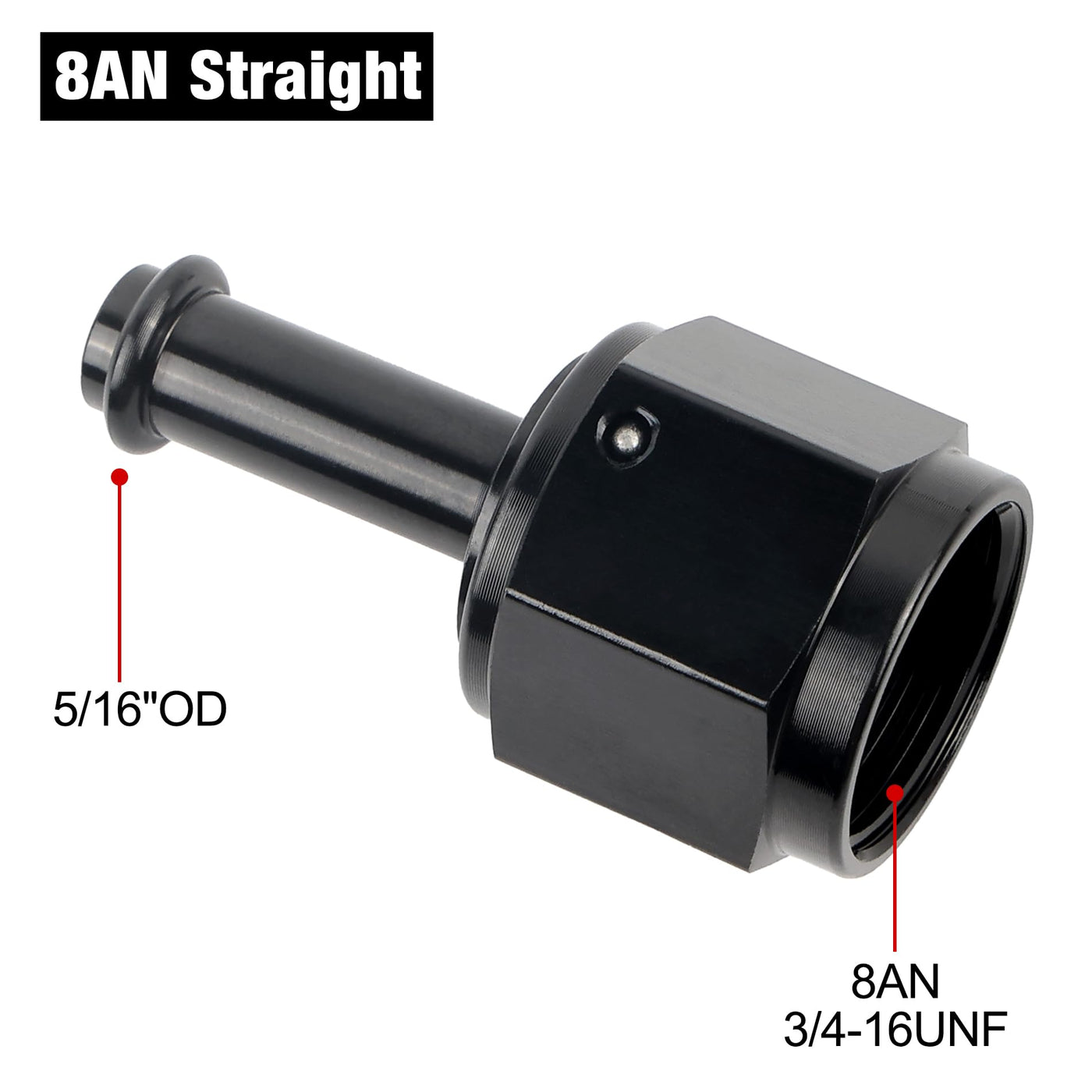 EVIL ENERGY is our brand, we 're a direct and professional manufacturer, one of greatest manufacturer and exporter in tuning parts include intake system, exhaust system, fuel system, cooling system, interior and exterior parts. The 8an to 5/16 inch barb is used for pipe link, widely used in fuel system. The barb fitting is made of aluminum alloy 6061-T6 with a black anodized finish. Note: When installing fittings, it is recommended to use clamps to ensure sealing.