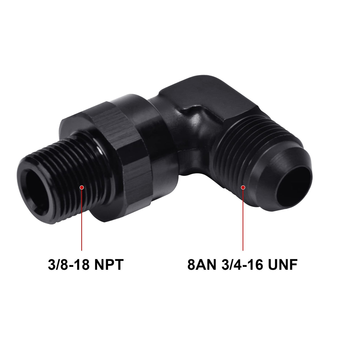 Evil Energy 8An Male Flare To 3/8 '' Npt 90 Degree Swivel Fitting Adapter Aluminum Black