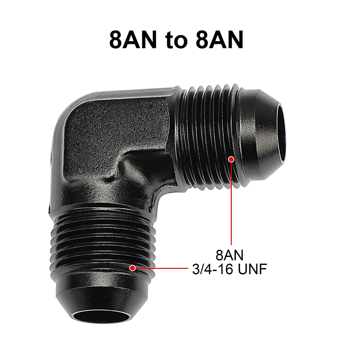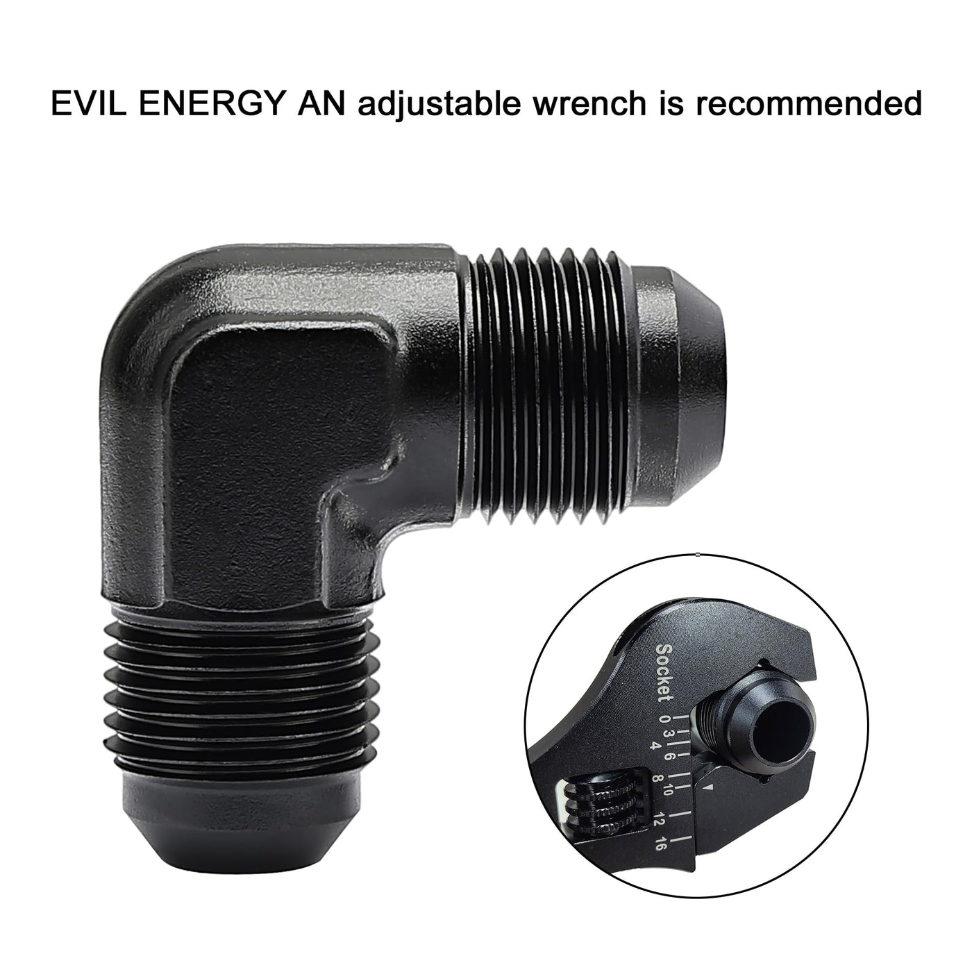 EVIL ENERGY 8AN Male to Male Flare 90 Degree Union Coupler Fitting Coupling Aluminum Black
