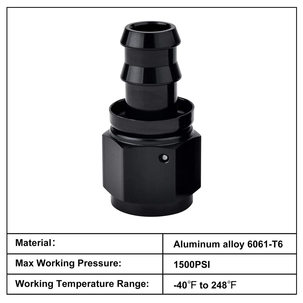 [Size] 8An To 1/2 Inch Barb, And Thread Size Of 8An Is 3/4-16Unf. | [Application] The Barb Fitting Only Work With Rubber Fuel Line. | [Parameter] Max Working Pressure: 1500Psi; Temperature Range: -40? To 248?. | [Material] Made Of Aluminum Alloy 6061-T6. | [Installation] Easy To Install, It Is Recommended To Use Clamps To Enhance Sealing.