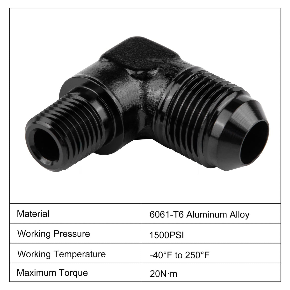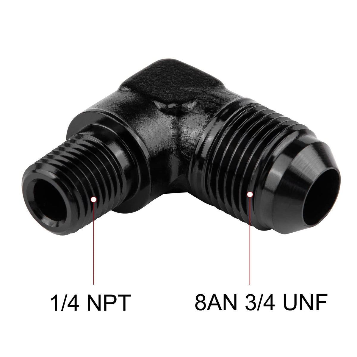 EVIL ENERGY is our brand, we're a direct and professional manufacturer, one of greatest manufacturer and exporter in tuning parts include intake system, exhaust system, fuel system, cooling system, interior and exterior parts. 1/4 inch NPT to 8an 90 degree elbow fitting is sealed by a 37 degree angle on the AN end and a 60 degree tapered thread on the NPT threaded end, ensuring a tight seal and easy handling. Notice: Strongly recommended to apply sealant or Teflon tape to NPT threads before assembly for better sealing effect.