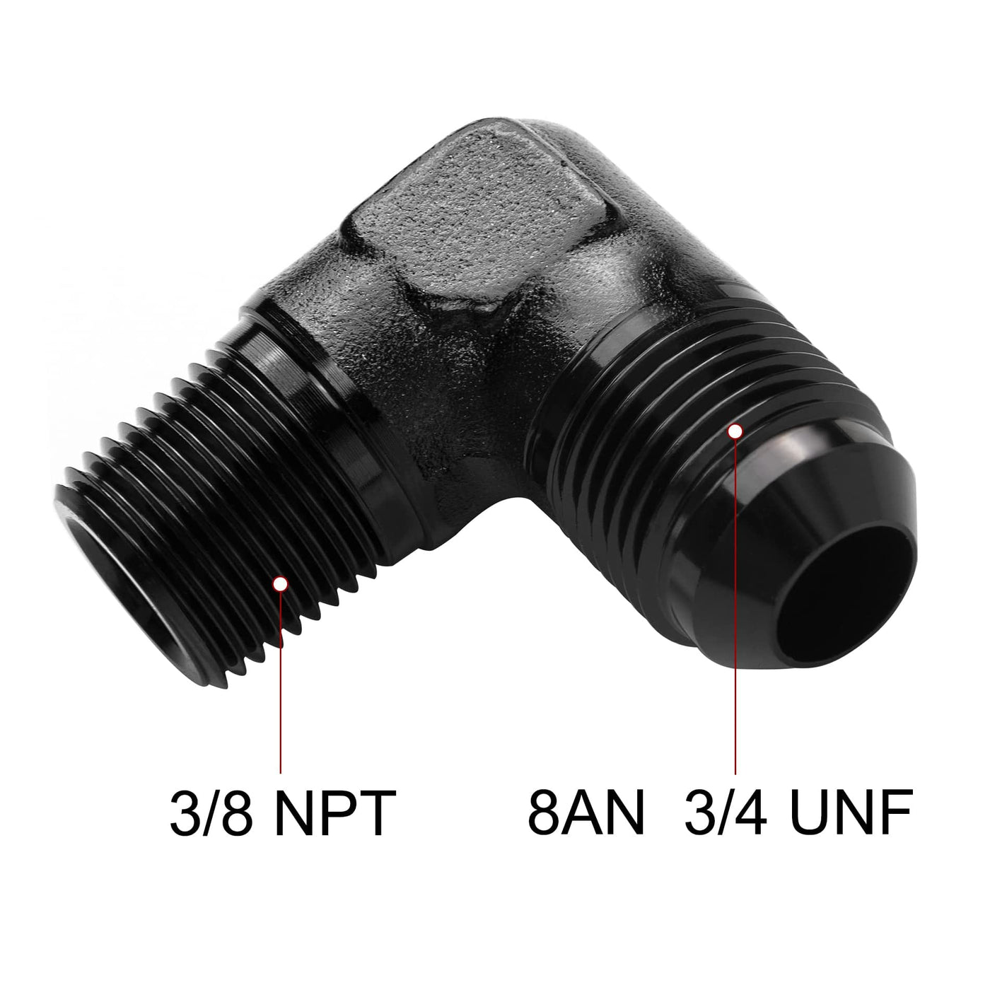EVIL ENERGY is our brand, we're a direct and professional manufacturer, one of greatest manufacturer and exporter in tuning parts include intake system, exhaust system, fuel system, cooling system, interior and exterior parts. 3/8 inch NPT to 8an 90 degree elbow fitting is sealed by a 37 degree angle on the AN end and a 60 degree tapered thread on the NPT threaded end, ensuring a tight seal and easy handling. Notice: Strongly recommended to apply sealant or Teflon tape to NPT threads before assembly for better sealing effect.