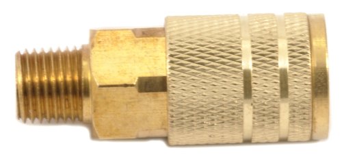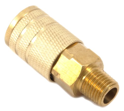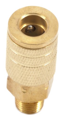 Q: What materials are used in the construction of the Forney 75316 Air Fitting Coupler?A: The Forney 75316 Air Fitting Coupler is made from durable steel with brass components, ensuring longevity and reliability in compressed air applications.