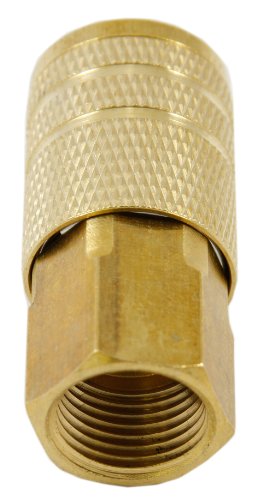 Q: What material is the Forney 75479 Air Fitting Coupler made of?A: The coupler is constructed from high-quality brass, ensuring durability and resistance to corrosion, perfect for long-term use in compressed air lines.