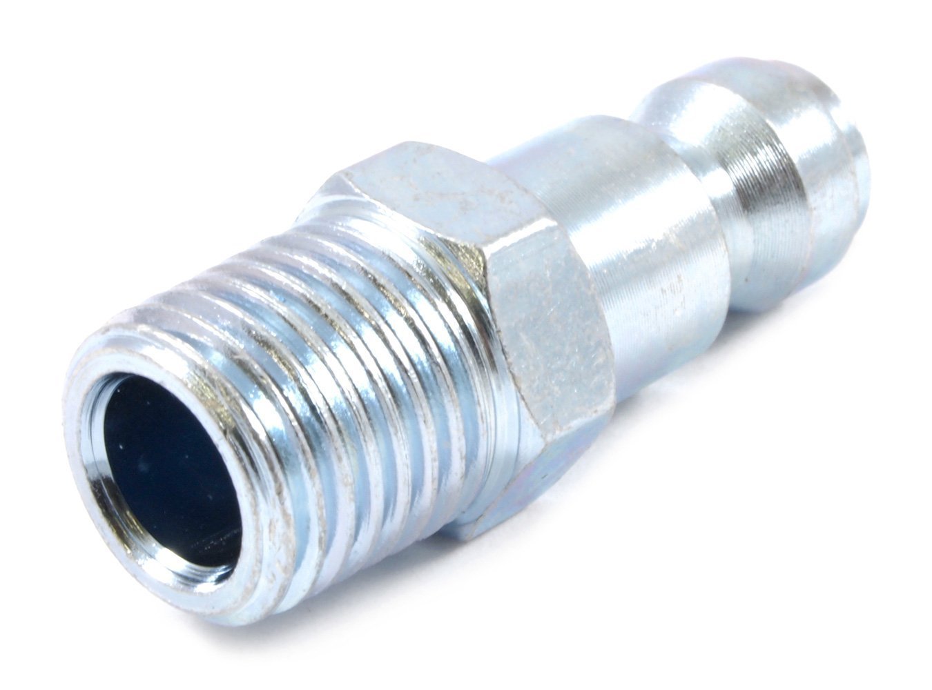 1/4' (6.35mm) plug. Steel construction. Max working pressure: 300 PSI. Carded 2Pak Please enter your postal code to check availability. Air Fitting, Plug, 1/4' (6.35mm) Tru-Flate® compatible plug with 1/4' male national pipe thread (NPT). Steel construction. Intended for use on compressed air lines only. Max working pressure: 300 PSI.