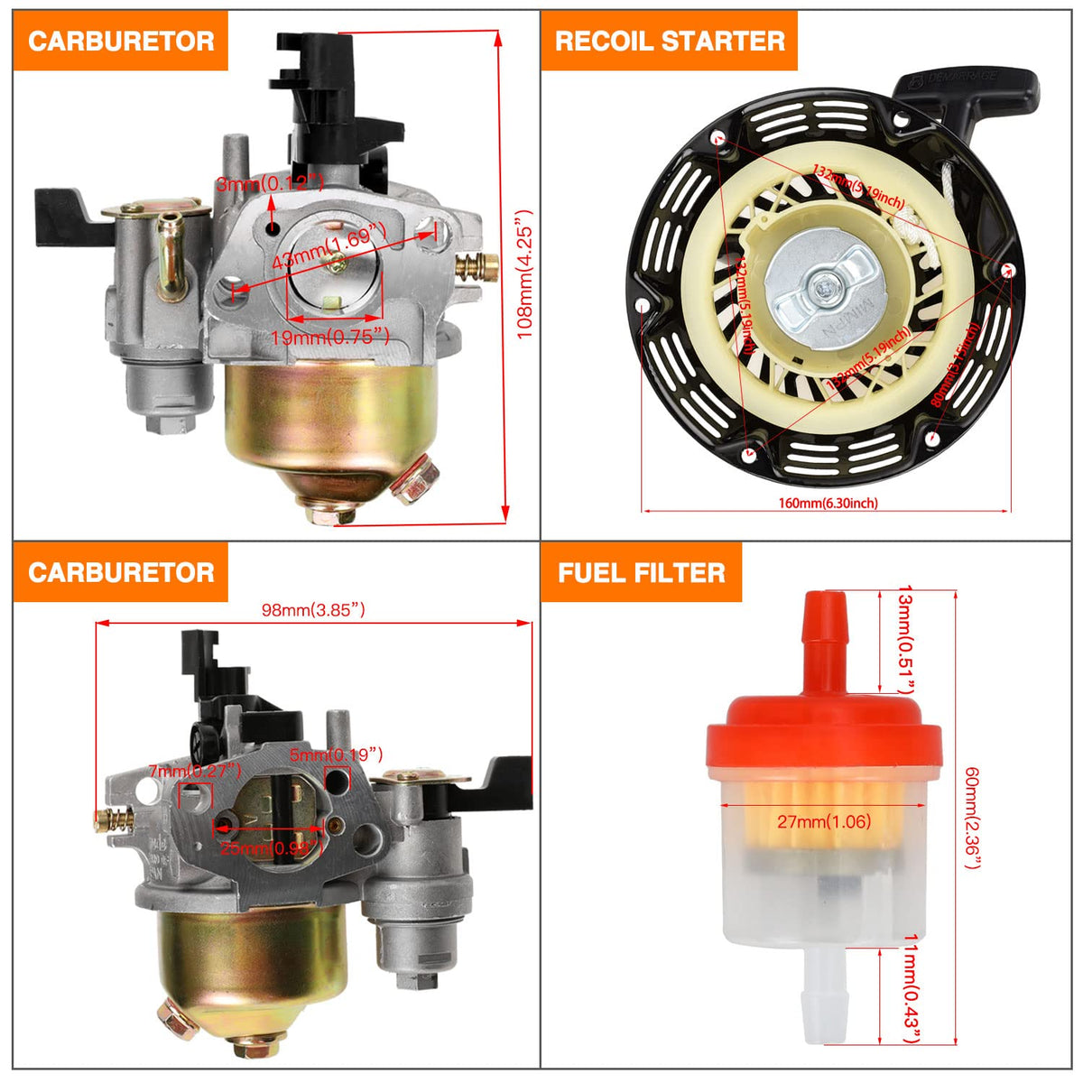Package Contents: 1 X Pull Start 1 X Carburetor 1 X Gasket Set 1 X Fuel Filter 1 X Fuel Line 6 X Bolt 1 X Spark Plug 1 X Wrench Note: -We Provide Clear Pictures, Measurements Where Possible. Please Check As Much As Possible To Make Sure The Item Is The One That You Need. -All Dimensions Are Measured By Hand, Please Allow 0.5-1 Inch Difference Due To Manual Measurement.(1Inch=2.54Cm).