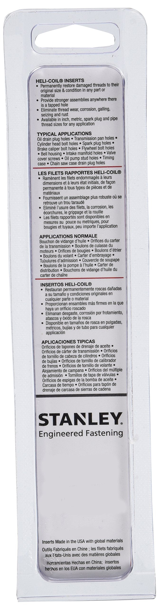 Helicoil Inch Fine Thread Repair Kit includes inserts, detailed instructions, Heli-Coil tap and installation tool. It is made from high quality material and is extremely long lasting. This inch fine thread repair kit is used for repairing tapped holes which have been stripped or damaged, due to wear, corrosion and over torque. It comes with a package type of durable placon or vinyl pouches.