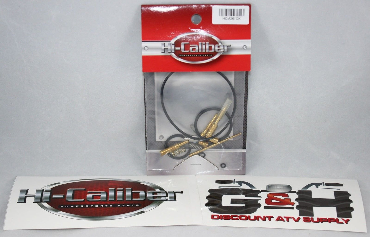 Q: Does the kit come with any additional items or benefits?A: Yes, the Hi-Caliber carburetor rebuild kit comes with a FREE G&H DISCOUNT ATV SUPPLY & HI-CALIBER POWERSPORTS PARTS decal and offers free shipping, adding extra value to your purchase.