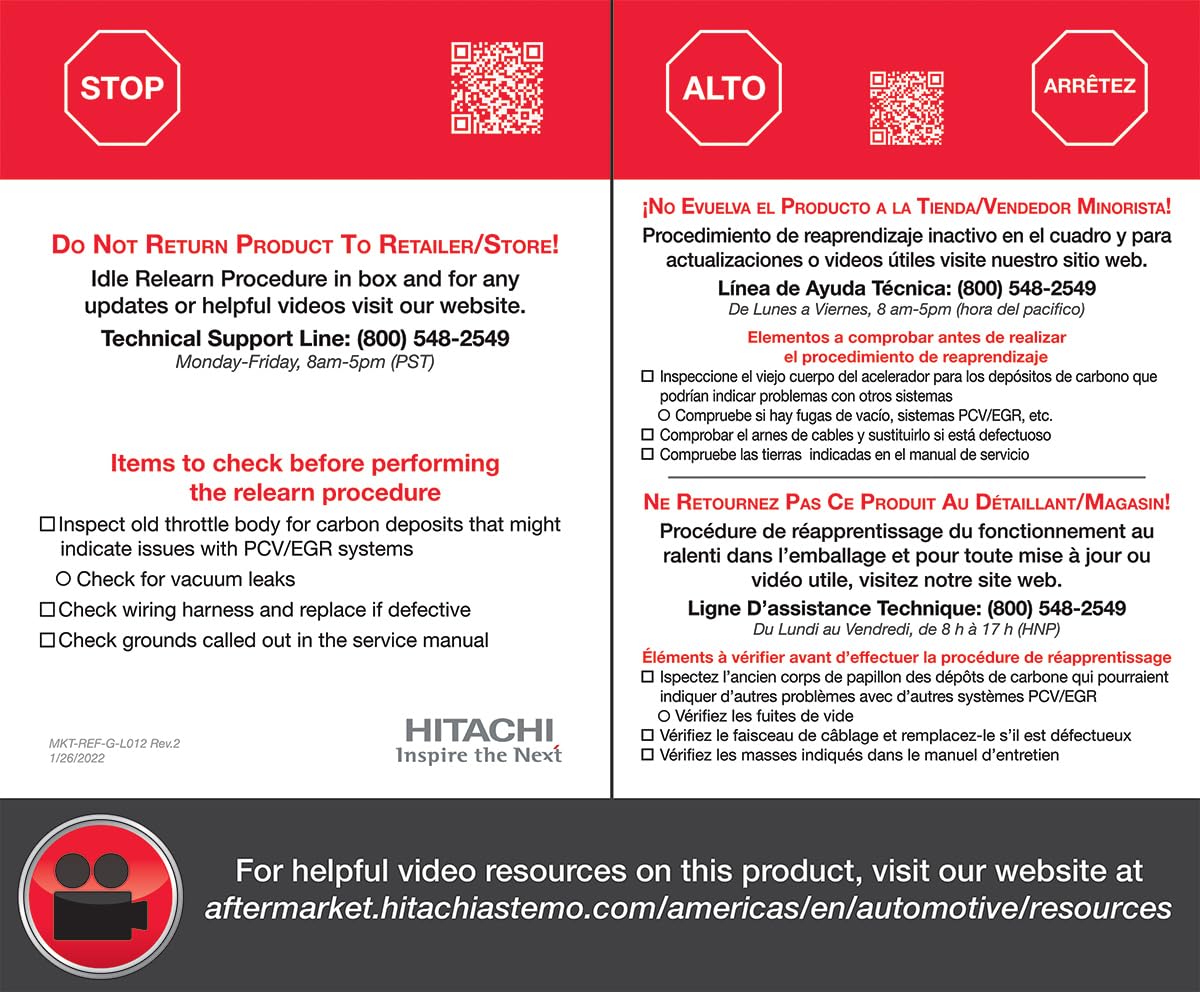 Hitachis Electronic Throttle Bodies (Etbs) Are Designed To Provide Extraordinary Accuracy With Quick Response Times. High Quality Materials Ensure That Even Under The Most Extreme Conditions, Hitachis Etbs Will Not Malfunction. Precision Throttle Position Sensor (Tps) Circuitry Maintains Accurate Engine Mapping Resulting In Optimal Fuel Economy And Performance. Details Such As Internal Gear Sizes, Tooth Count, Materials, And Protected Circuitry Provide A Durable And Reliable Product Approved By Oe Manufacturers. Designed To Meet The Exact Needs Of Each Specific Vehicle, Hitachis Electronic Throttle Bodies Are The Premium Choice. Known Compatibility: 2007-2015 - Infiniti, Nissan Altima, Nissan Murano, Nissan Pathfinder, Nissan Quest, Infiniti Qx60, Infiniti Jx35 - Engine: 3.5L