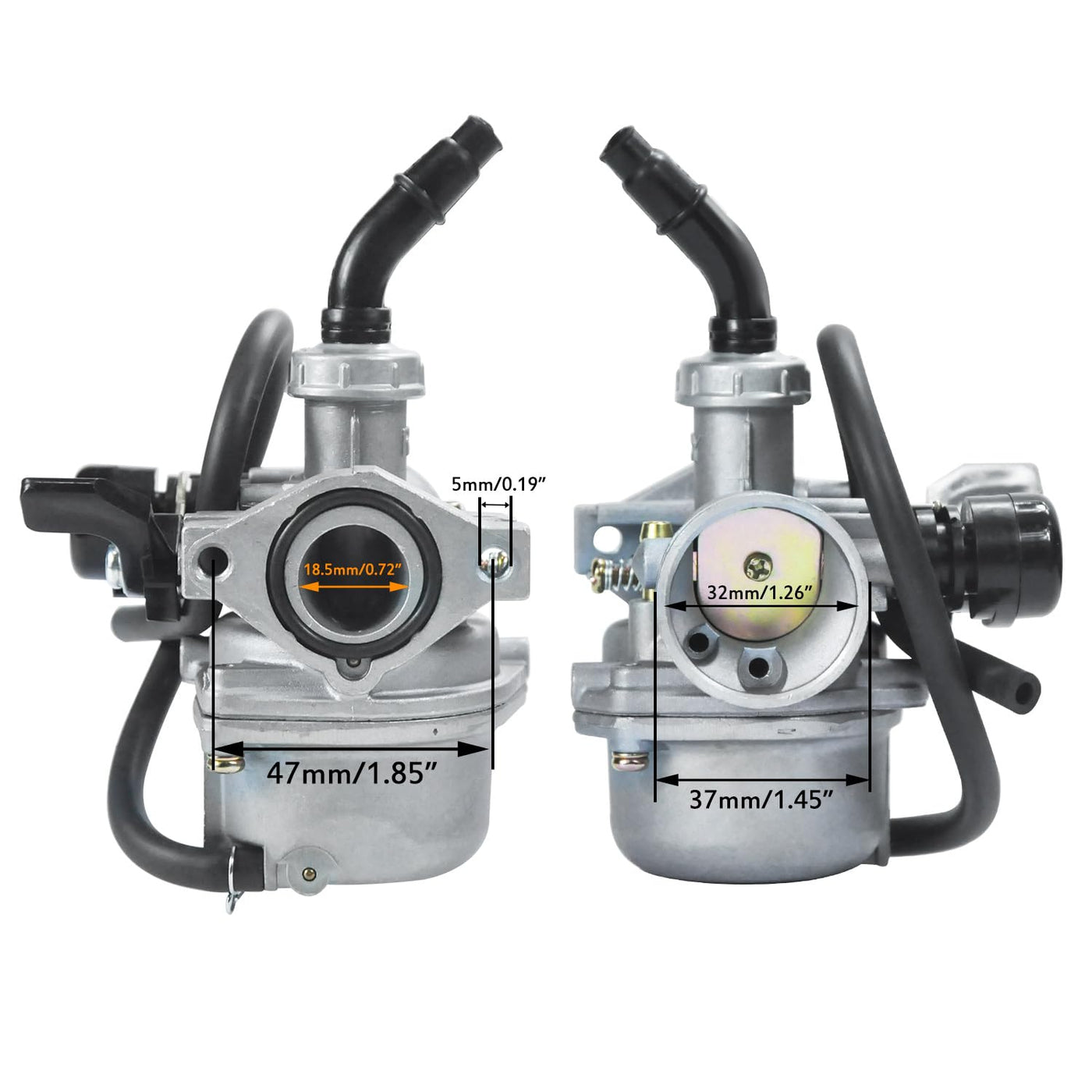 Q: What types of vehicles is the HOLATO PZ20 Carburetor compatible with?A: The HOLATO PZ20 Carburetor is compatible with a range of vehicles including 50cc to 125cc Chinese kids ATVs, four-wheelers, mopeds, quad dirt bikes, and go-karts. It fits models such as Taotao ATA-110B, ATA-125D, Boulder B1, TFORCE, and various Honda dirt bikes like XR50R, XR70, and CRF70.